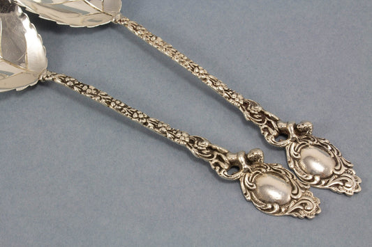 パティ付きの小さなシルバーサラダサーバー、800シルバー、カトラリー、アールヌーボー、