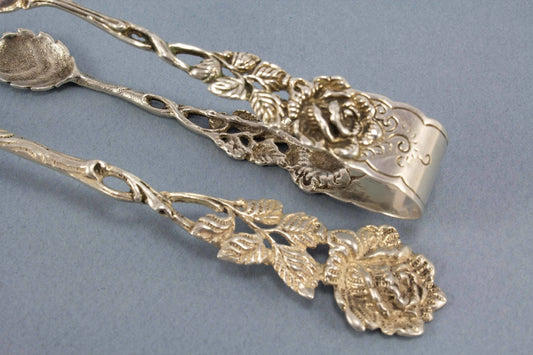 シュガートング、800シルバー、ロココ、バラ、アールヌーボー
