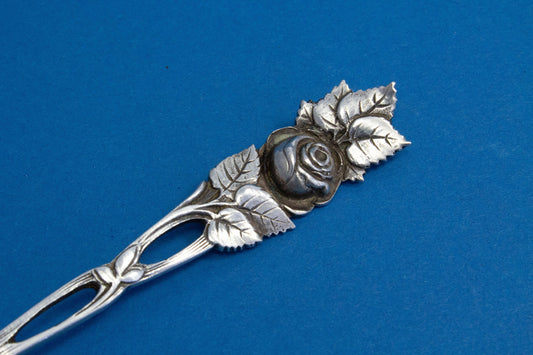 アンティーク アール ヌーボー様式の銀製コンポート スプーン、1919 年
