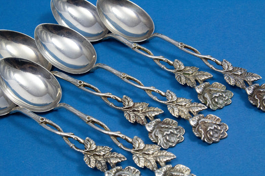バラの装飾が施されたシルバー モカ スプーン 6 本
