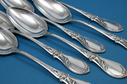 Lutz and Weiss のアンティーク テーブル スプーン 6 本、シルバー 800、アール ヌーボー