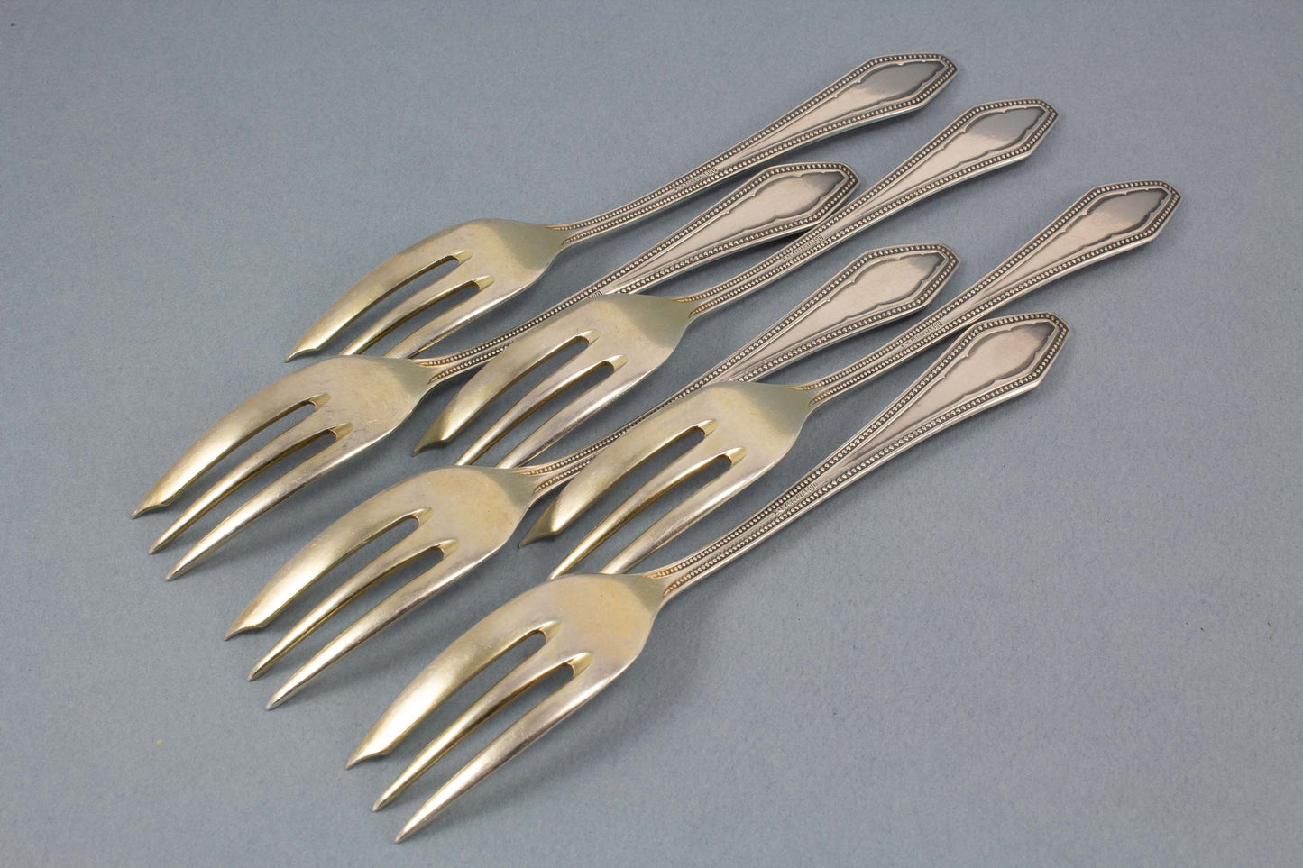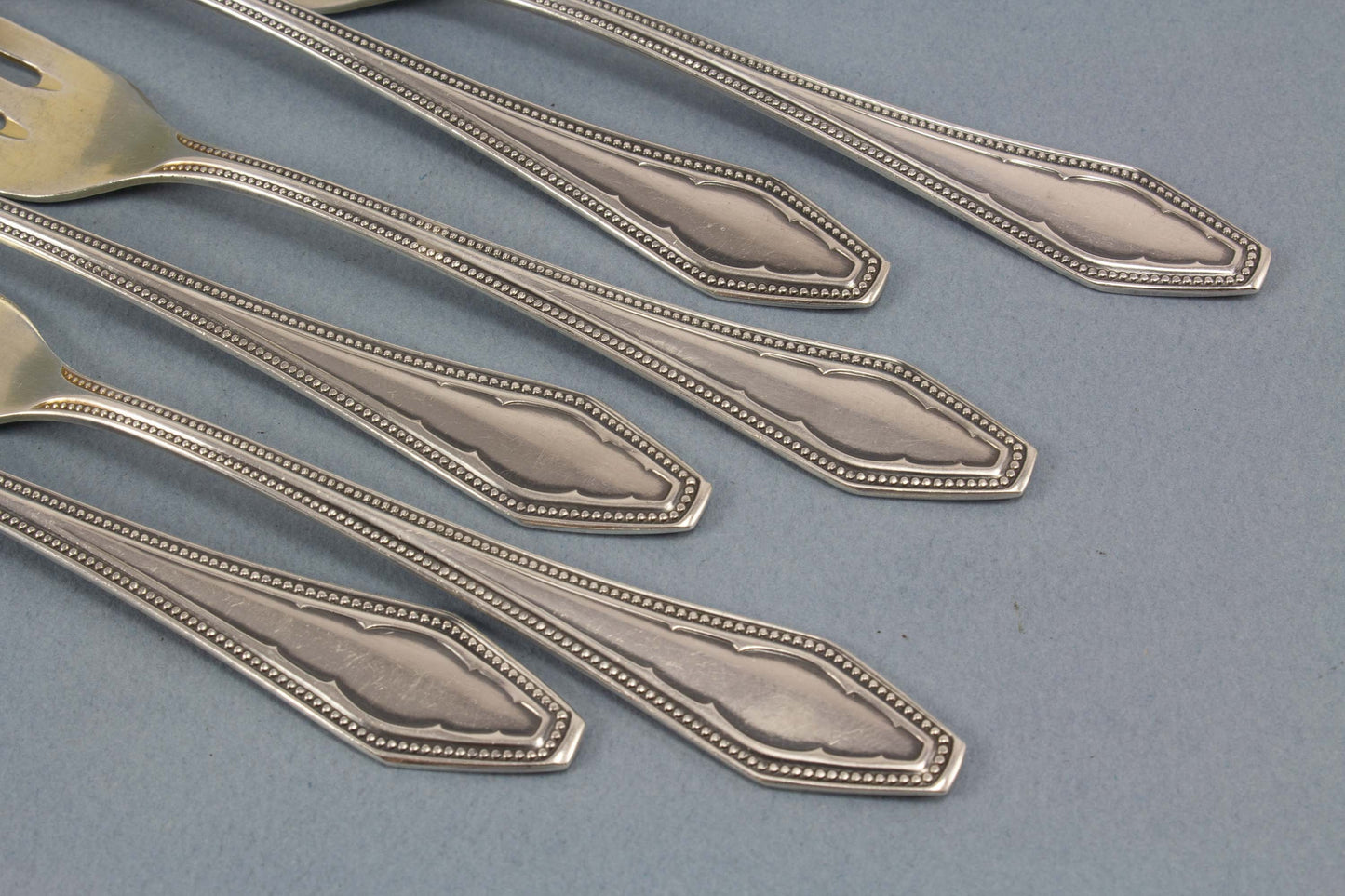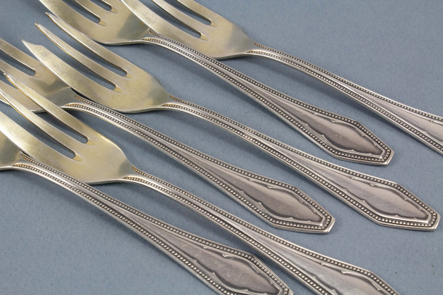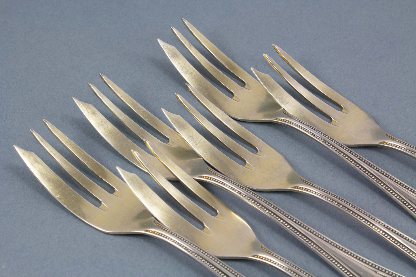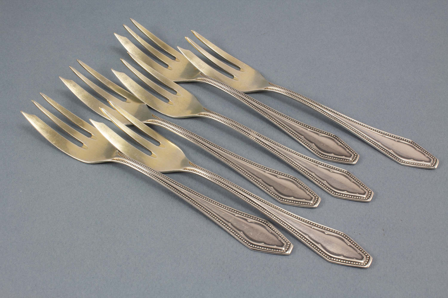 Argentaの銀メッキのペストリーフォーク6本。高貴な真珠の装飾がフォークを特別な人目を引きます。