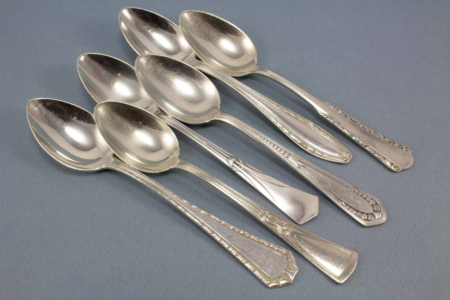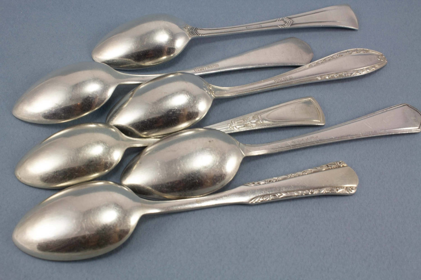 銀メッキ小さじ6杯、ミックスアンドマッチ、ミスマッチ、みすぼらしいシック、スプーン