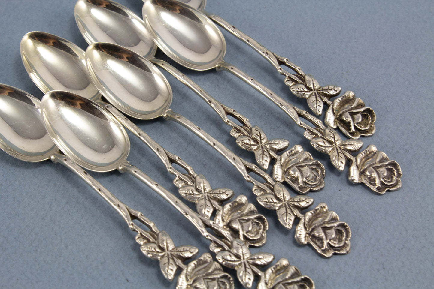 800シルバー製のモカスプーン7杯、バラのエスプレッソスプーン、ウィドマン