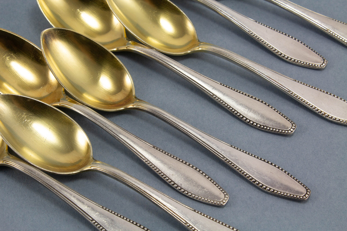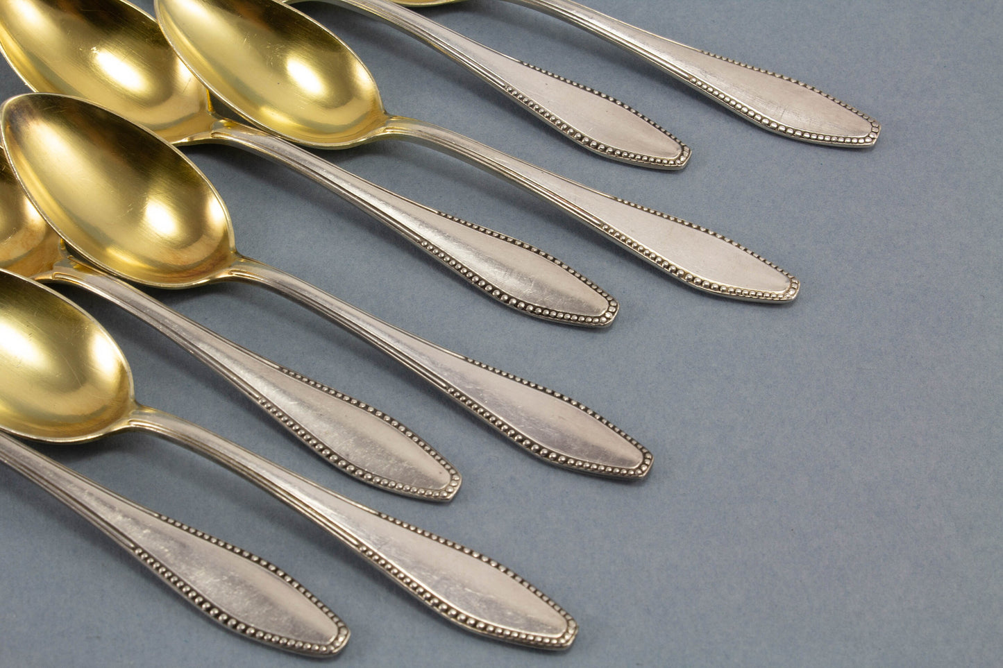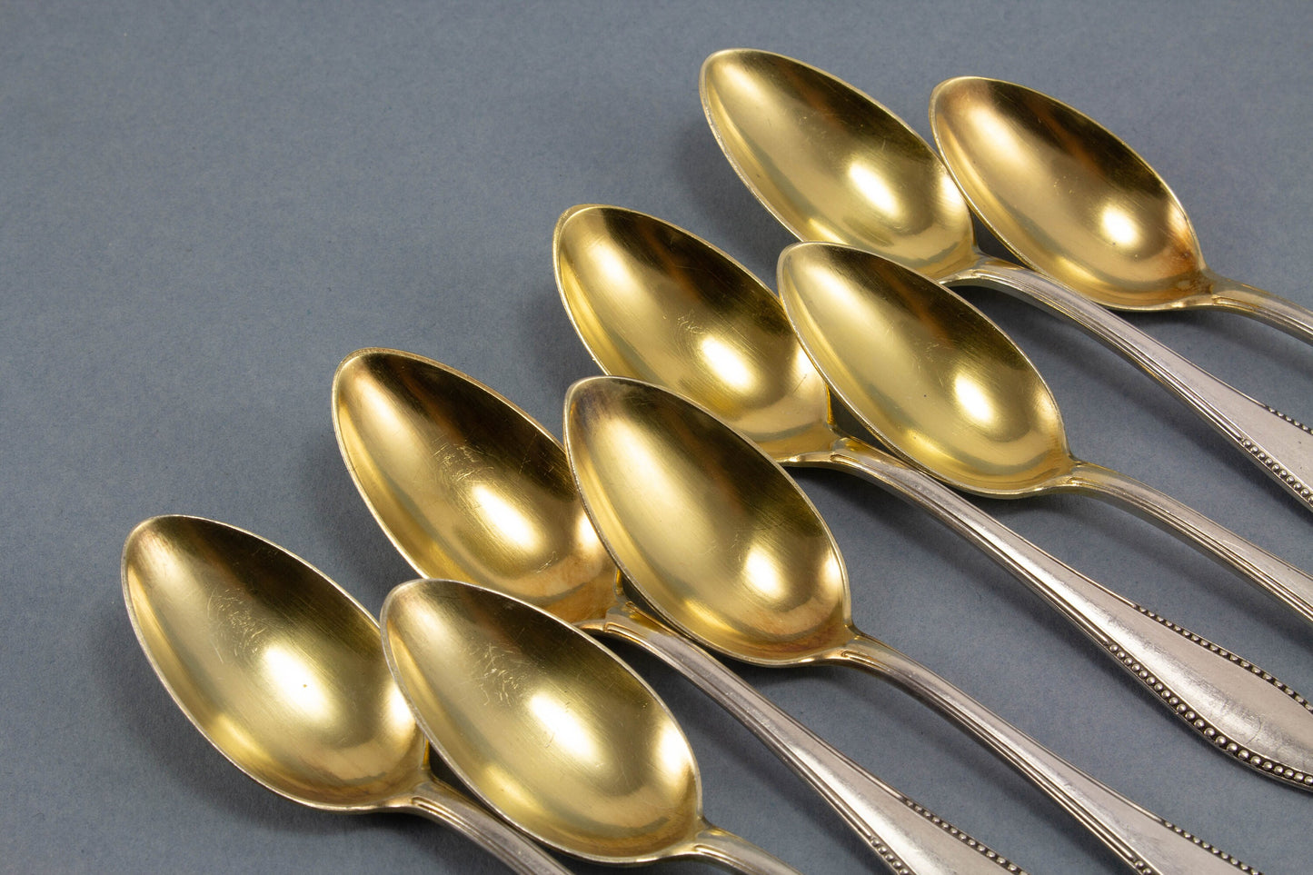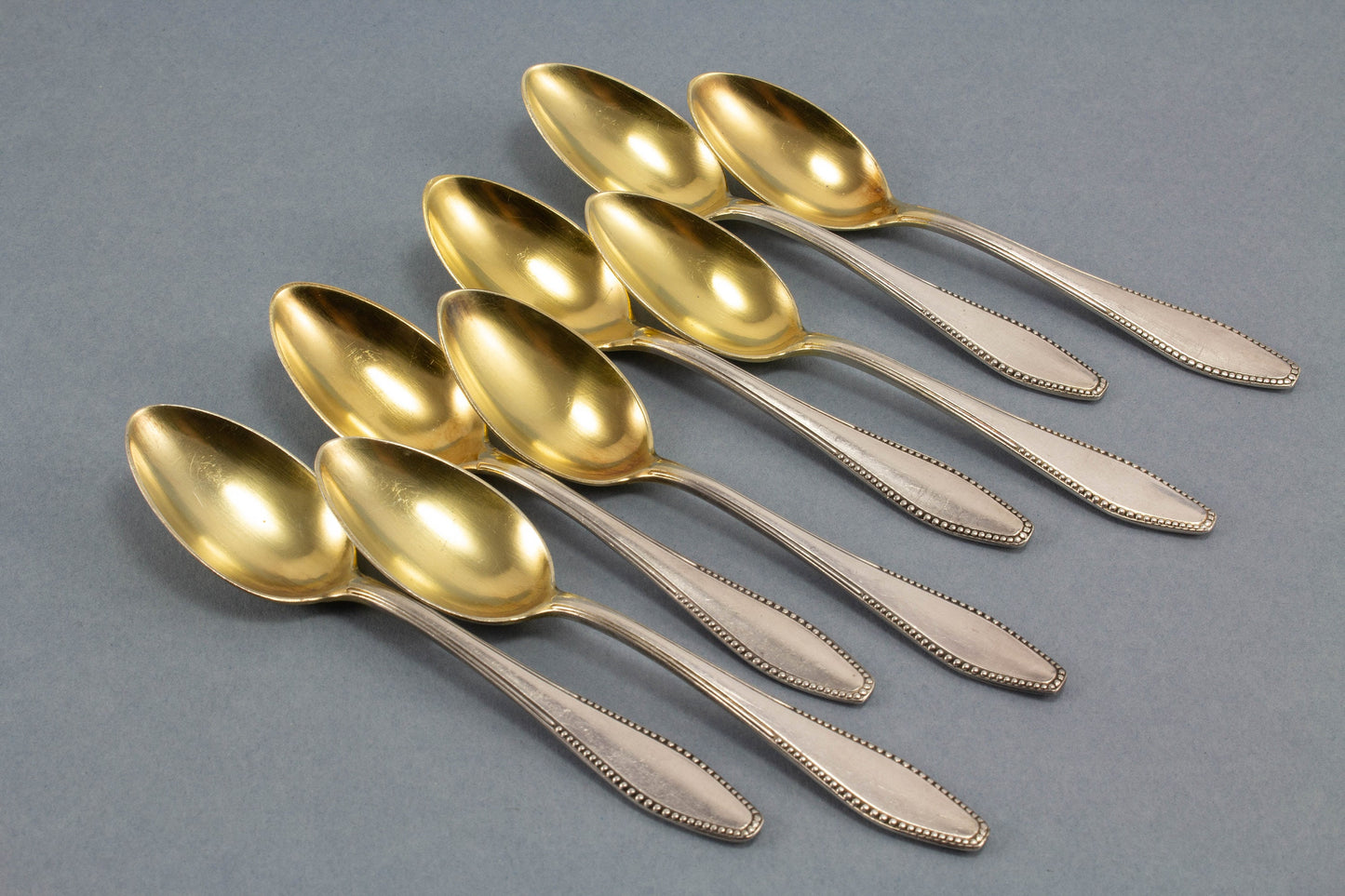 アンティーク モカ スプーン 8 本、銀メッキ、アールデコ
