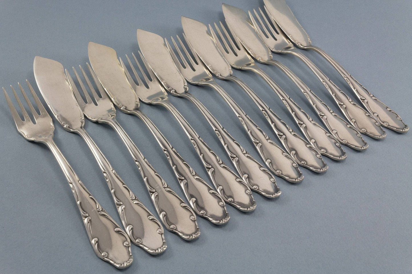 フィッシュカトラリー、銀メッキ、フィッシュフォーク、フィッシュナイフ、6名