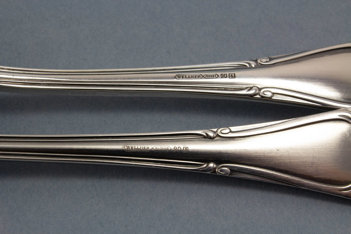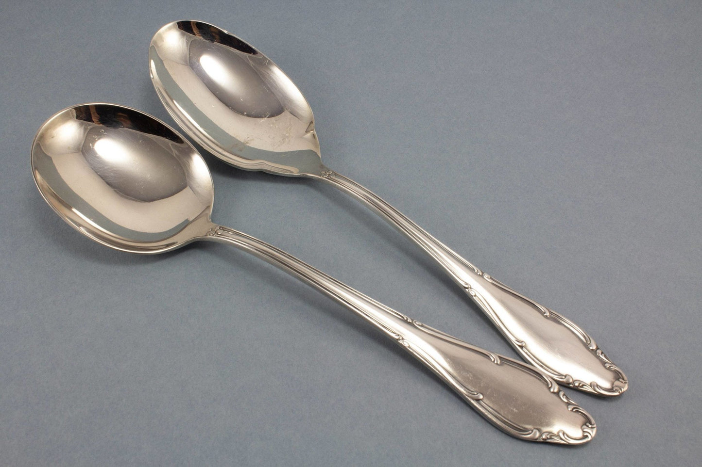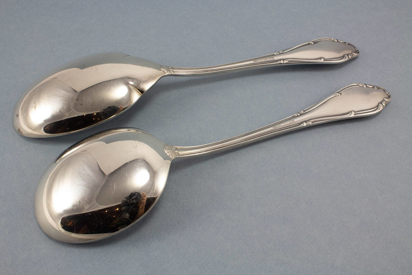 モーツァルトパターンのウェルナーによる野菜スプーンとジャガイモスプーン、銀メッキスプーン