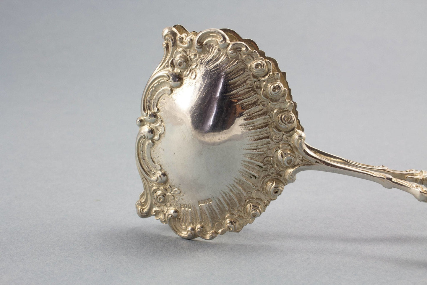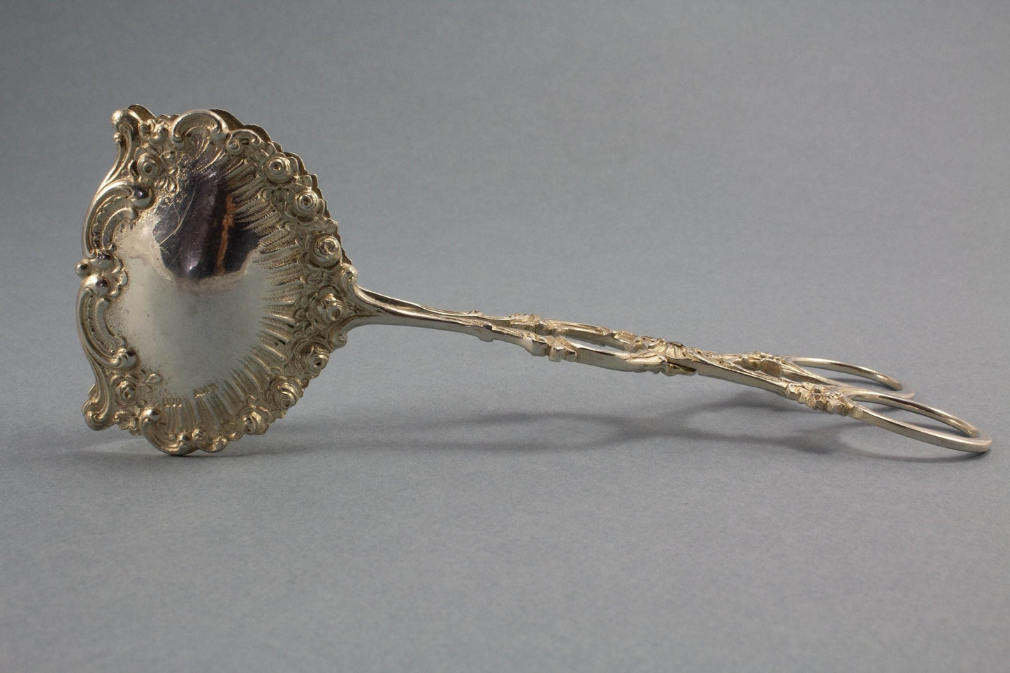 細線細工のバラの装飾が施されたこれらのアンティークのシルバーペストリートングは、あなたがそれらをつかむように誘います。花の装飾は、ペンチ全体に精巧かつ愛情を込めて仕上げられました。それはアダムマンから来ています。使わなくても素晴らしい光景です。花のようなペストリーのトングは800シルバーから作られました。
