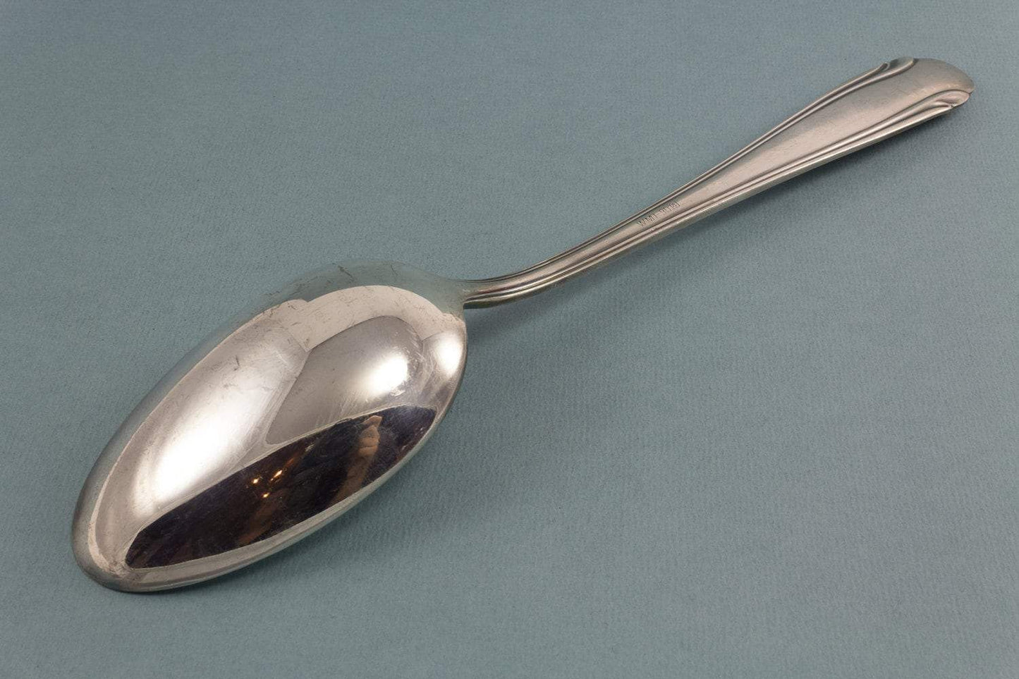 この銀メッキの野菜スプーンは、古典的なWMFの装飾を示しています。