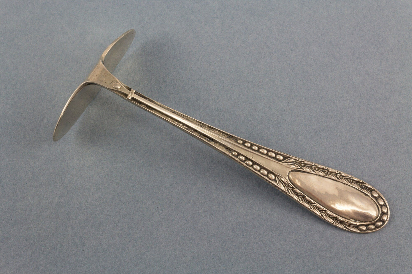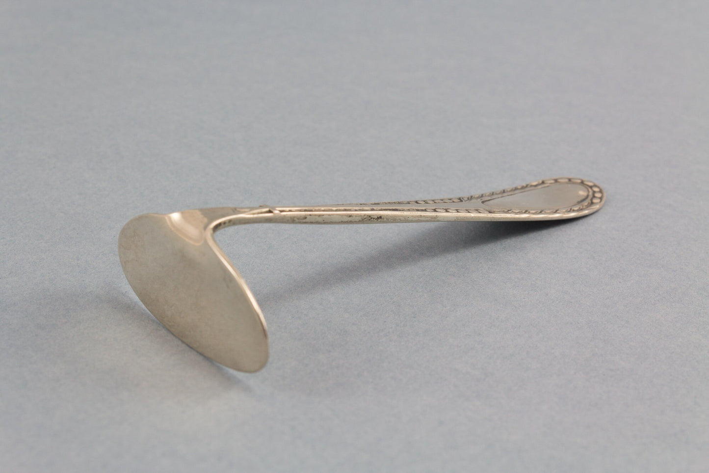 800シルバーで作られたこのアールヌーボーのお粥プッシャーは、グスタフクロップ社から来ています。パルプスライドは、真珠と花輪で作られた驚くほど美しいアールヌーボー様式を示しています。