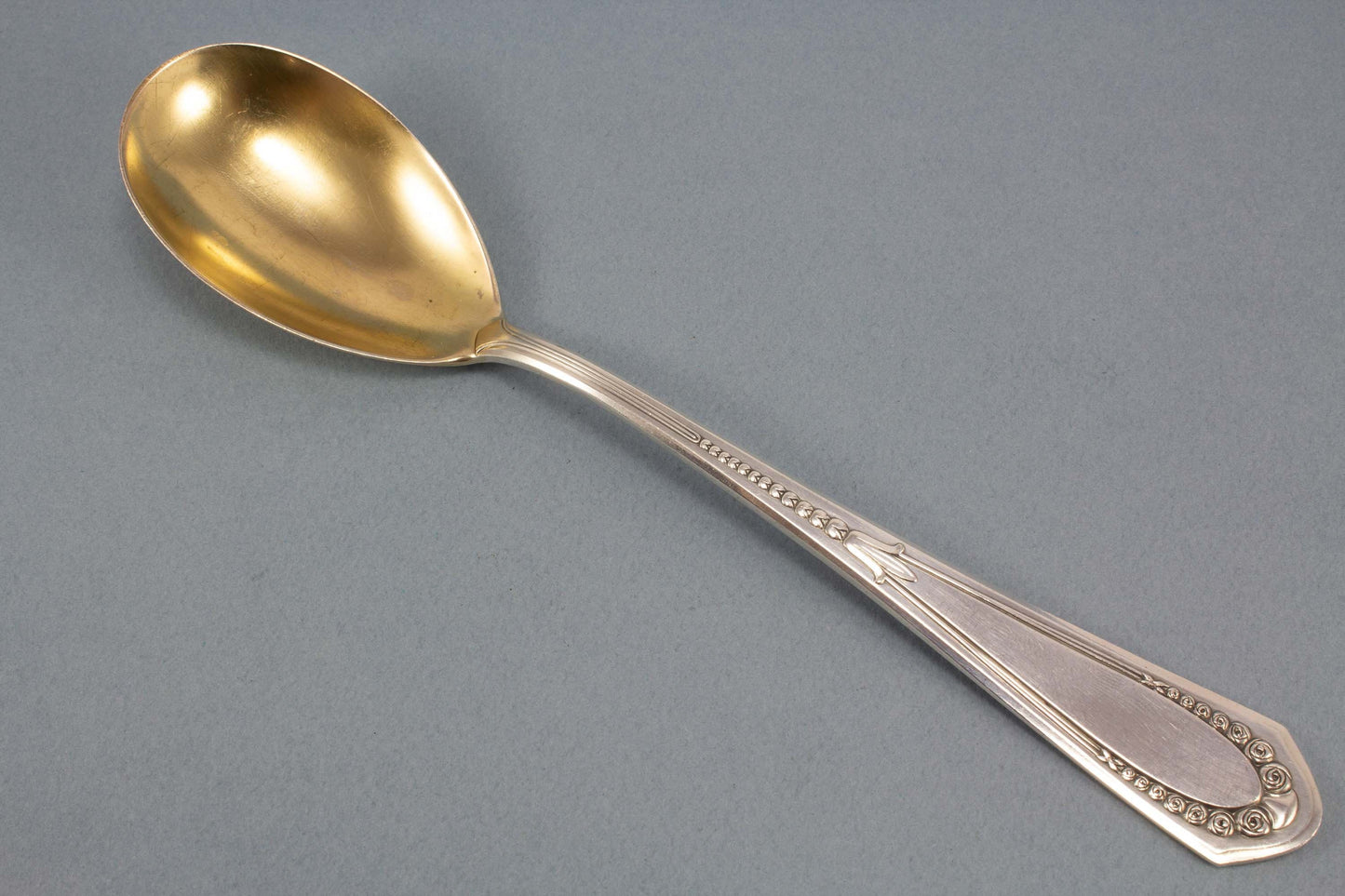 銀メッキのコンポート スプーン、WMF、バラ 400 本