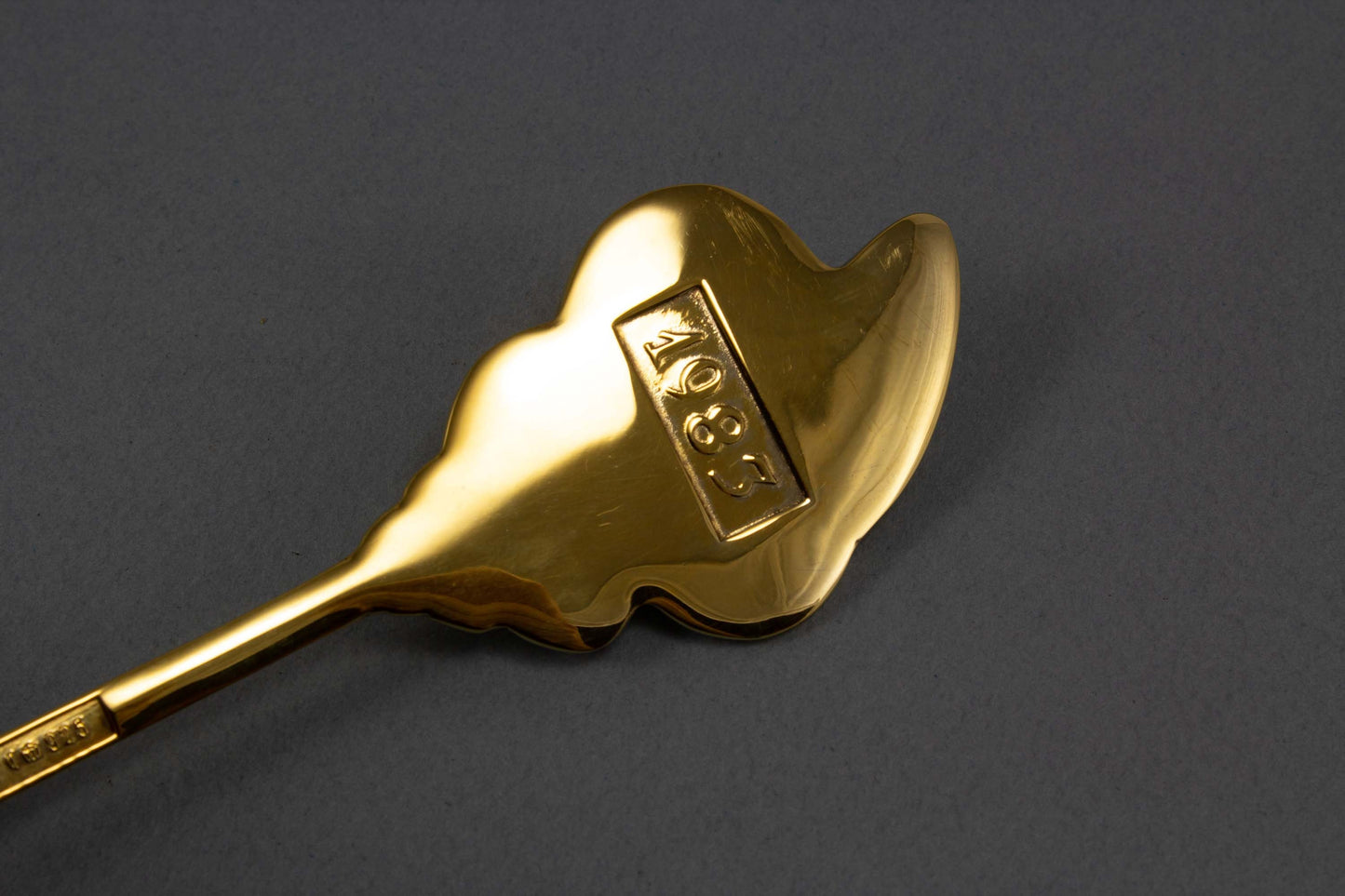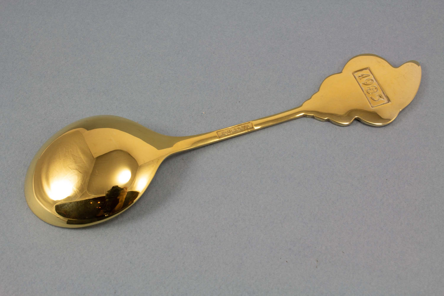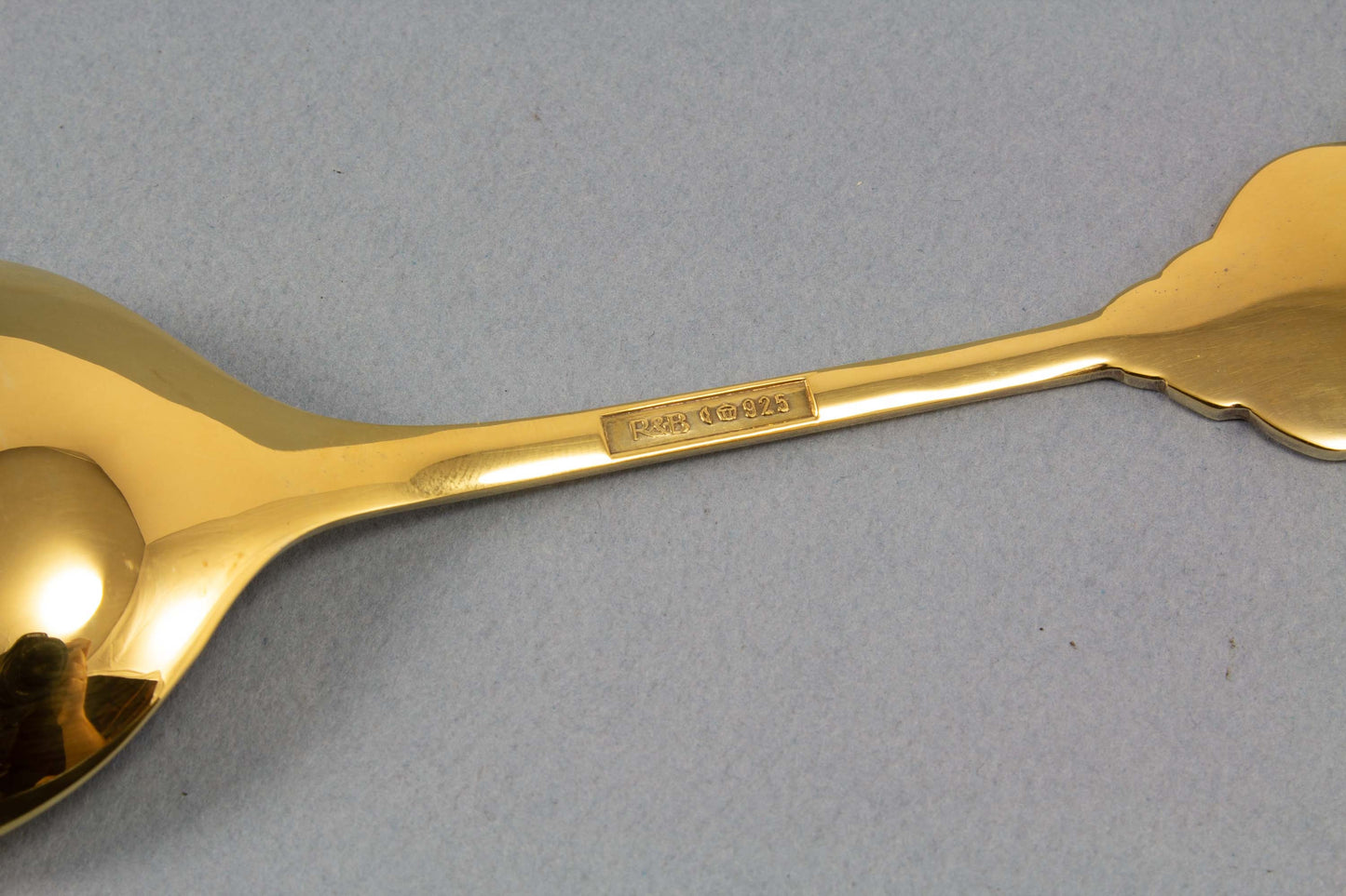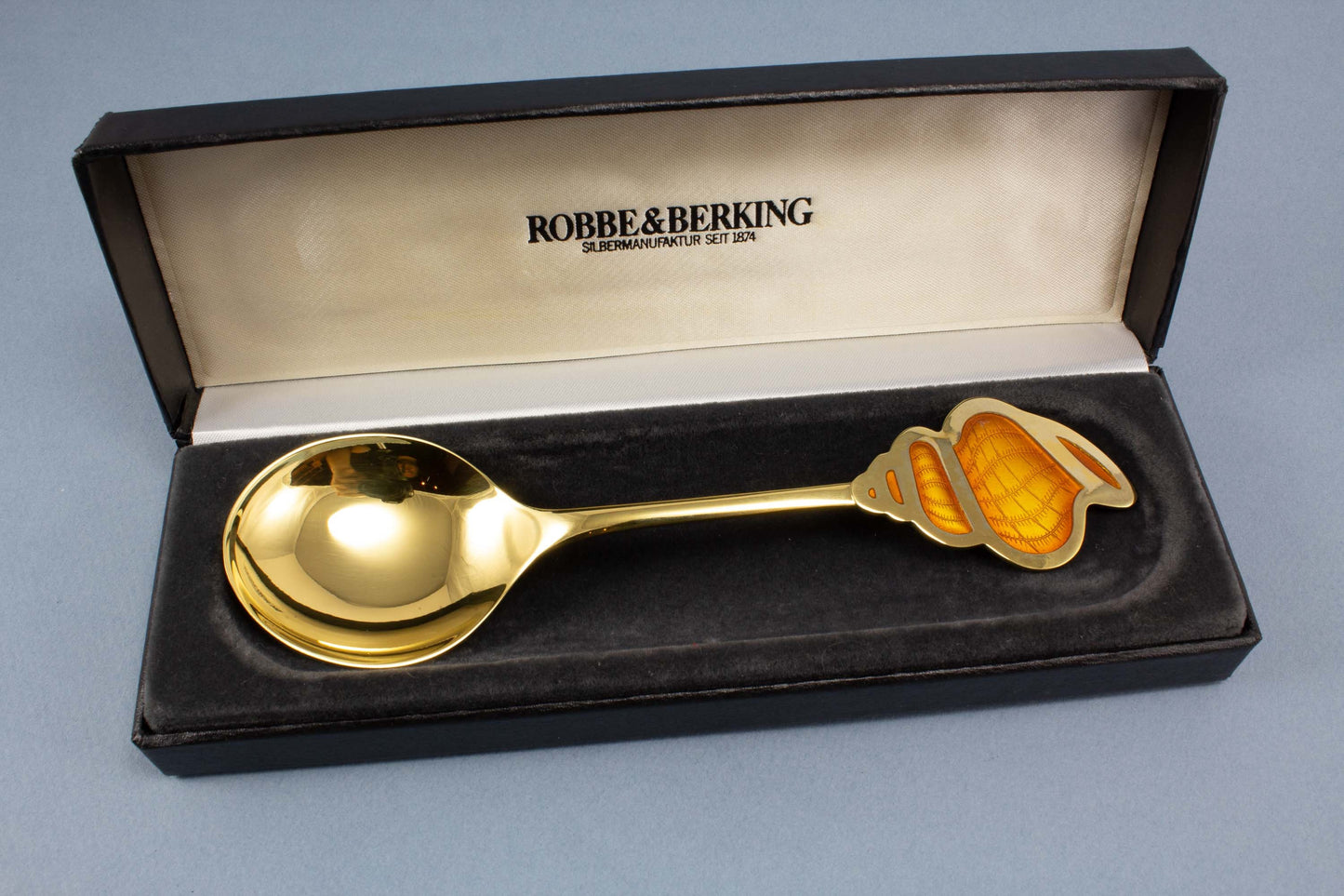 1983 年の Robbe and Berking の高貴なシルバーの年次スプーンです。Robbe & Berking の年次スプーンは、芸術的価値と物質的価値の高いコレクターのアイテムです。スプーンは 925 スターリング シルバーから鍛造され、ハード ゴールド メッキが施されています。 1969年以来、毎年新しいモデルが世界限定でリリースされています。精巧なモチーフは手作業でエナメル加工されています。