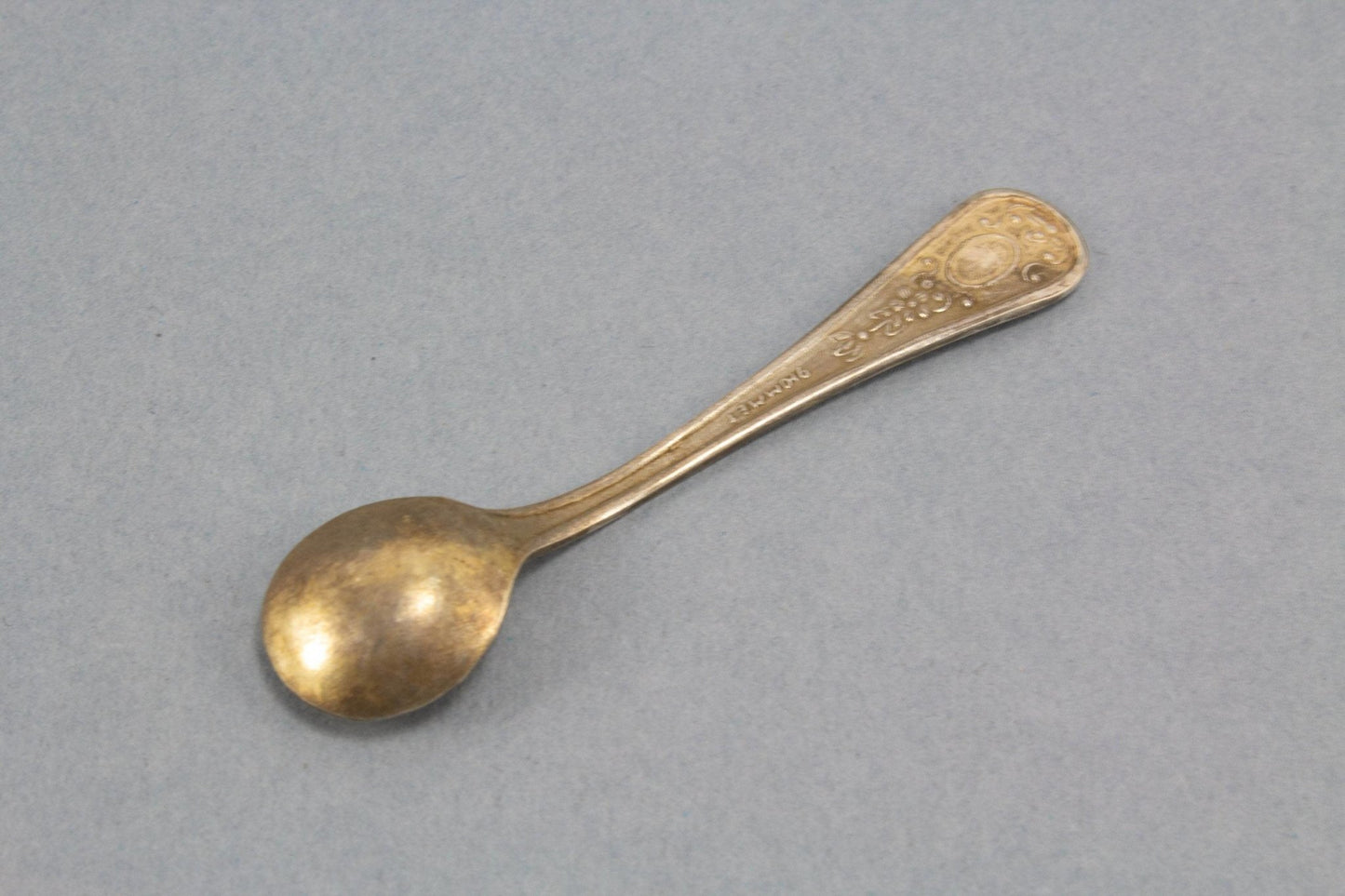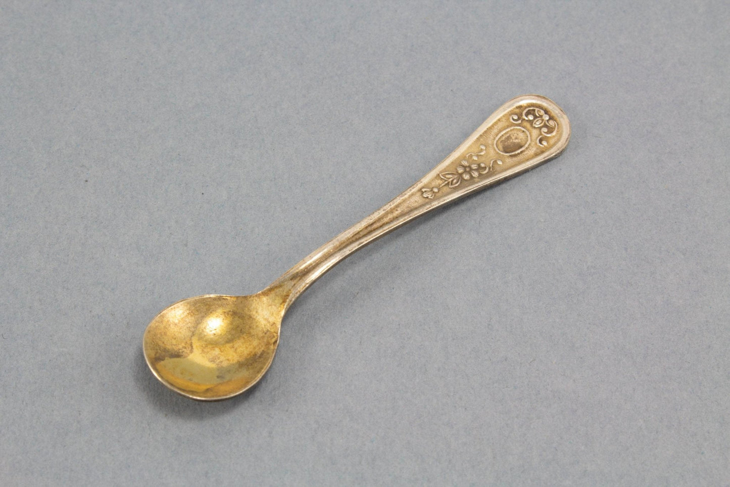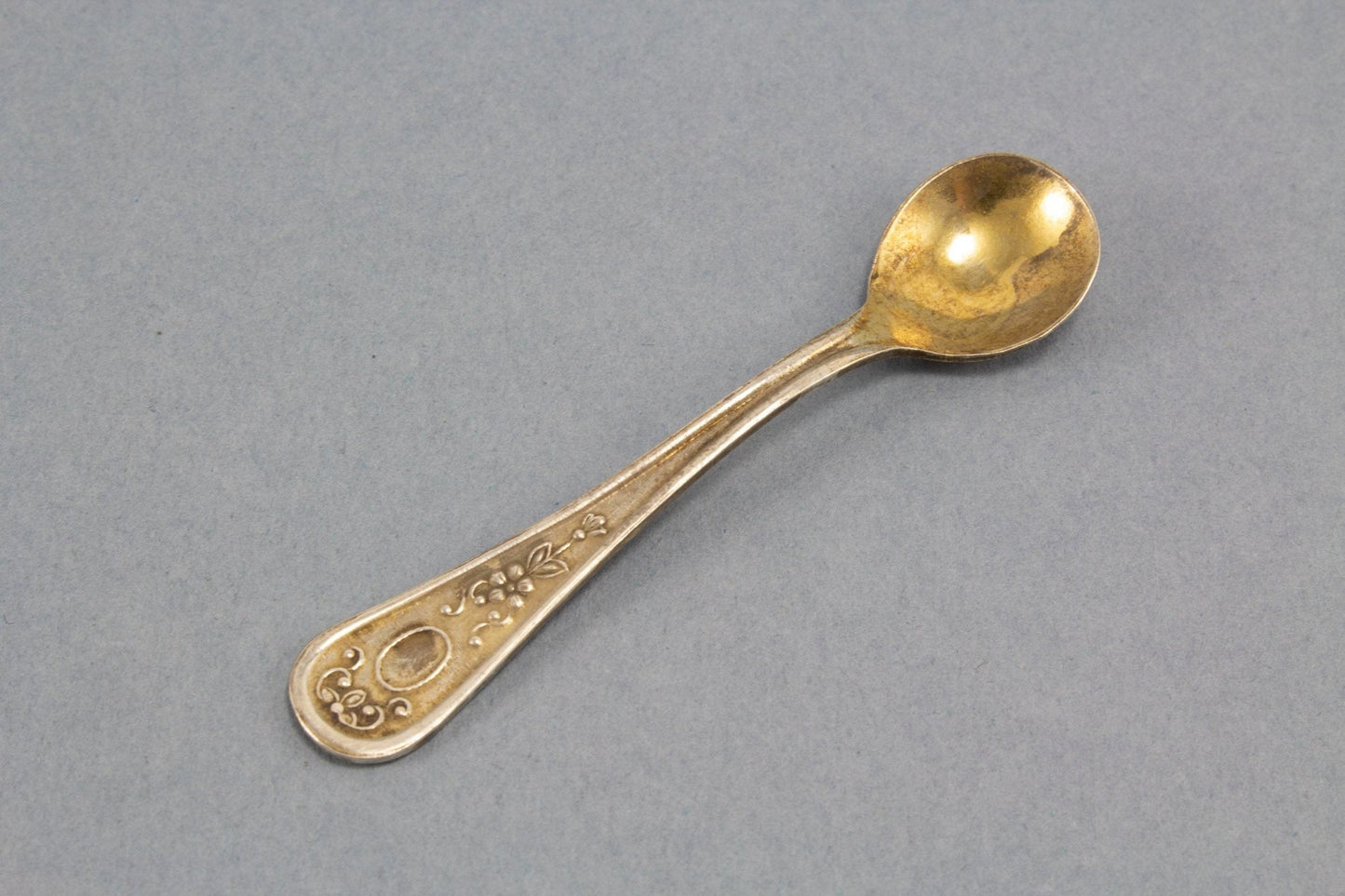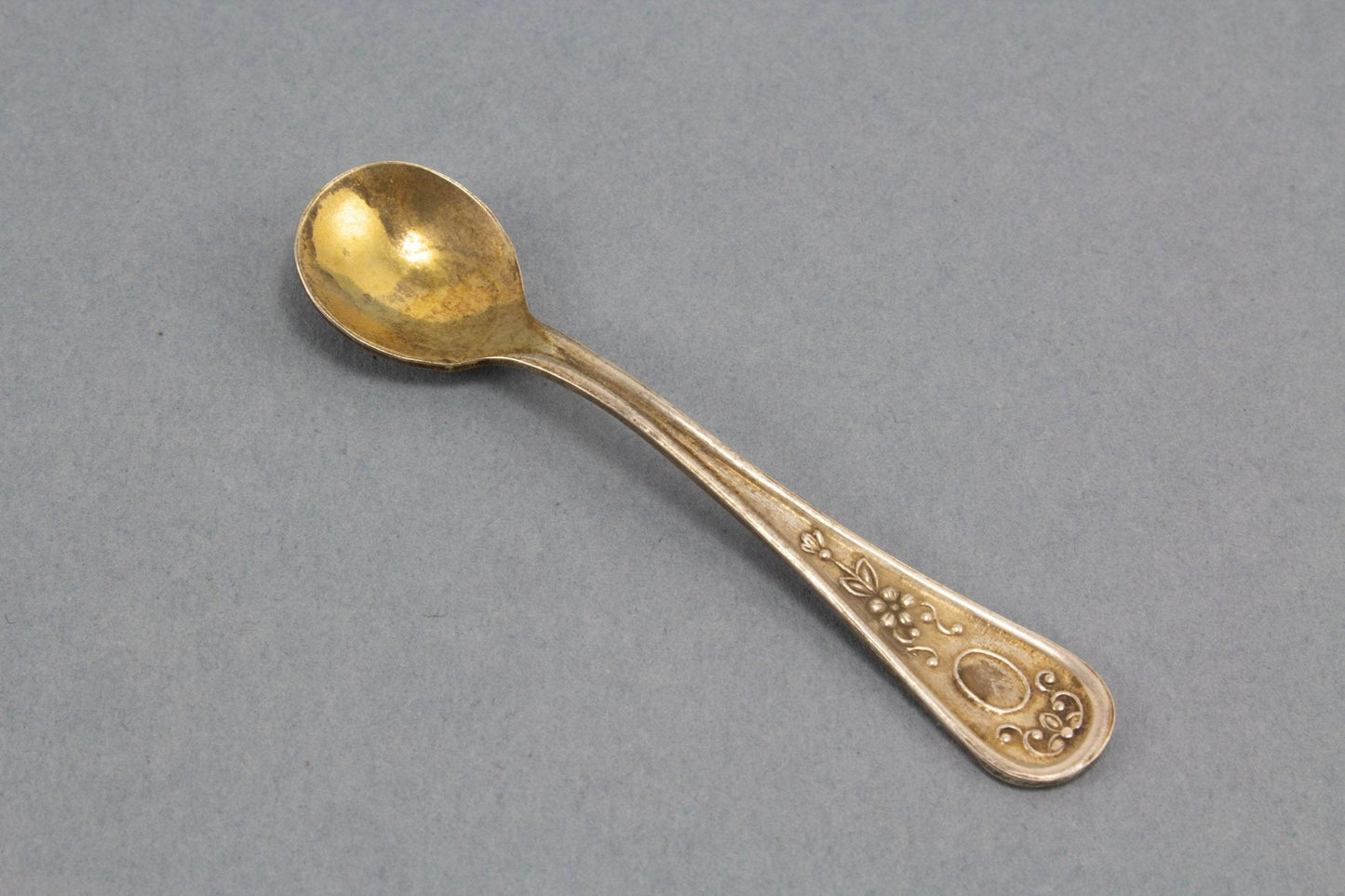 この小さな塩スプーンまたはスパイススプーンは銀メッキされています。この小さなスプーンは、塩、スパイス、キャビア、または慎重に使用したいものをスプーンで飲むのに最適です。 1900年頃からの美しく珍しいスプーン。