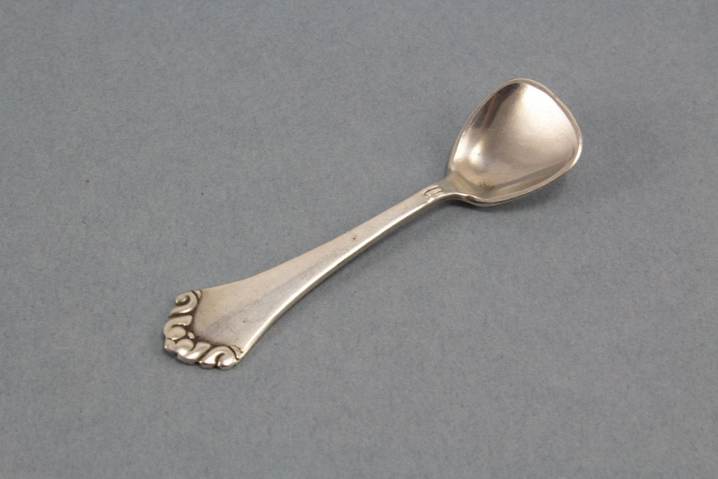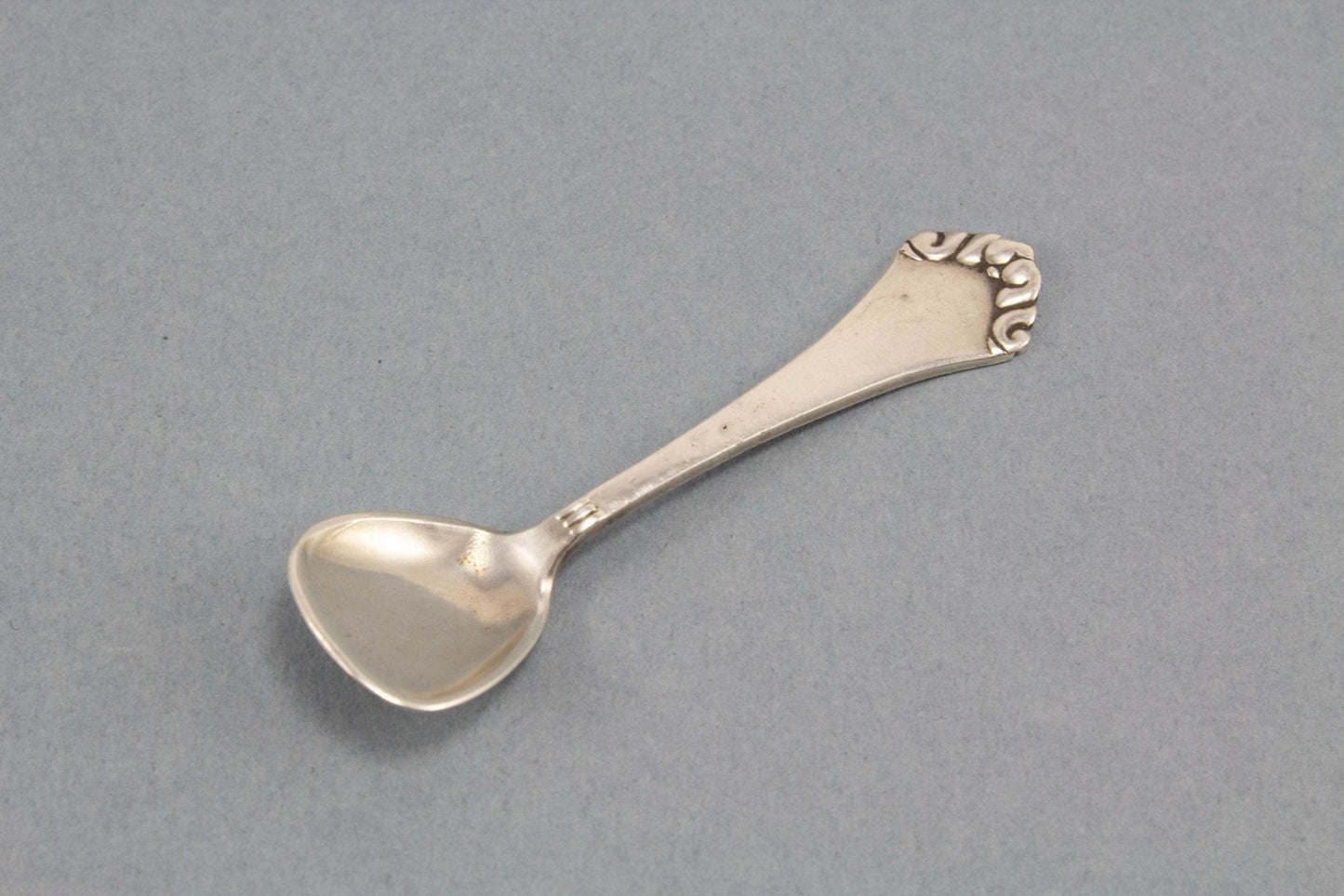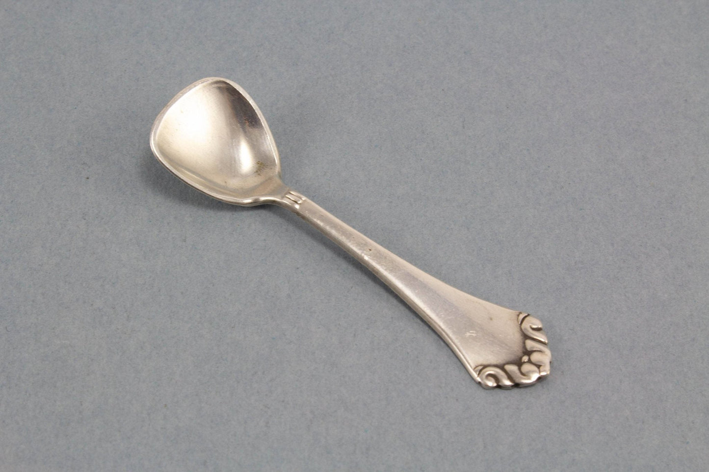 この小さな塩スプーンまたはスパイススプーンは銀メッキされています。この小さなスプーンは、塩、スパイス、キャビア、または慎重に使用したいものをスプーンで飲むのに最適です。 1900年頃からの美しく珍しいスプーン。