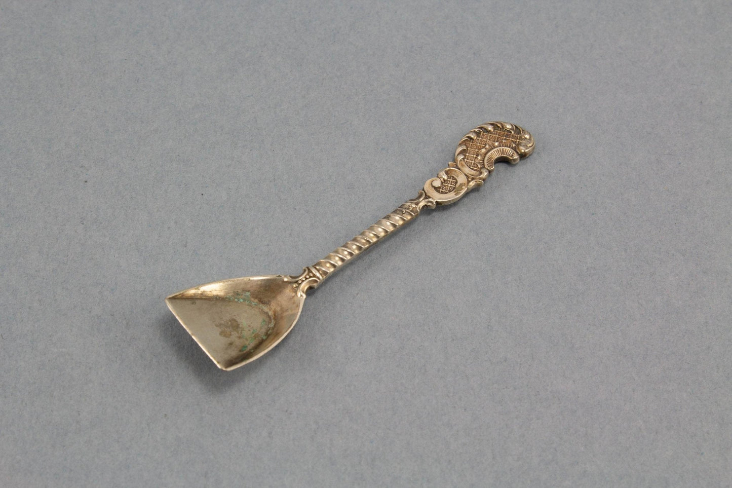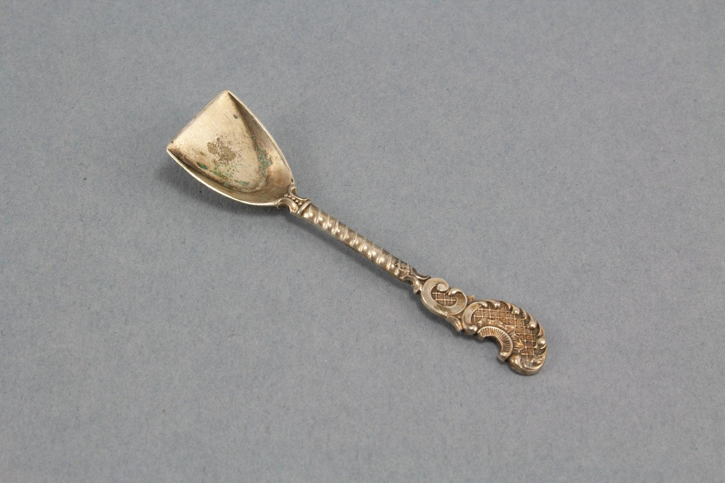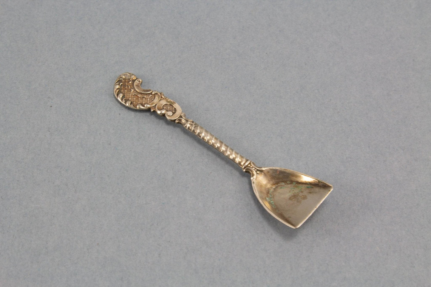 この小さな塩スプーンまたはスパイススプーンは銀メッキされています。この小さなスプーンは、塩、スパイス、キャビア、または慎重に使用したいものをスプーンで飲むのに最適です。 1900年頃からの美しく珍しいスプーン。