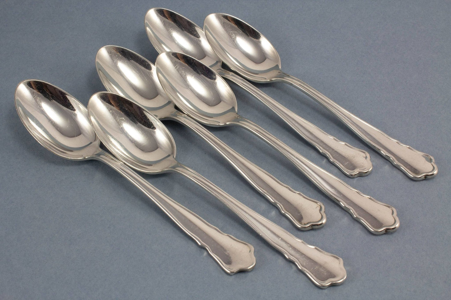 これらの6つの美しい小さじは銀メッキされており、ウィルケンズから来ています。装飾されたすべてのコーヒーテーブルに、見たり使用したりするための高級ヴィンテージスプーン。