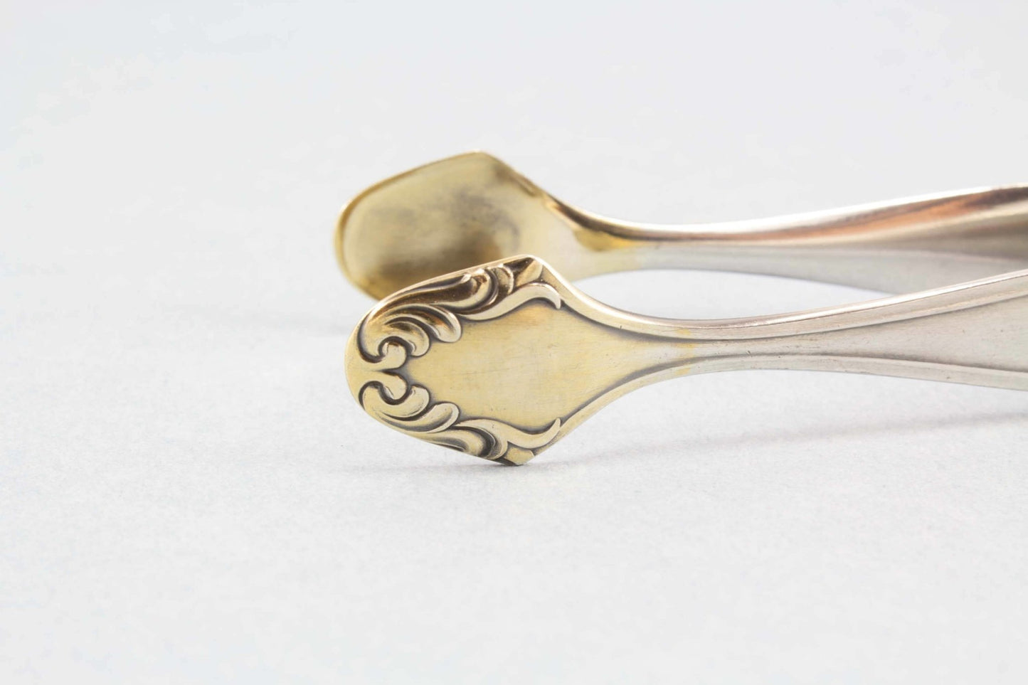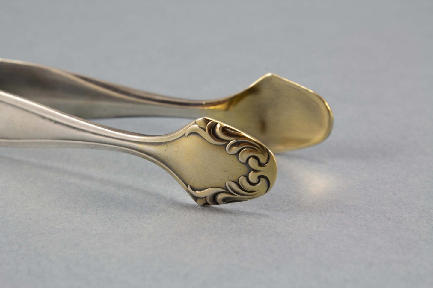 砂糖トングは銀メッキされています。さらに、グリッパーは金メッキされています。