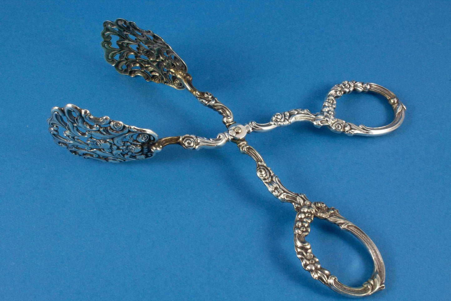 これらの美しい銀メッキのペストリートングは、あなたがそれらをつかむように誘います。遊び心のあるアールヌーボー柄のペストリートングは、コーヒーテーブルの目を引くものです。ペストリートングは問題なく開閉できます。