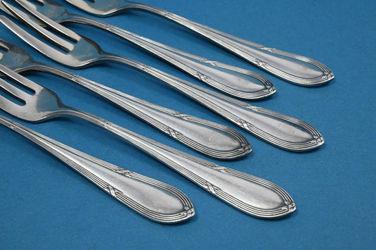 1900년대의 아름다운 아르누보 케이크 포크 6개, 크로스 밴드