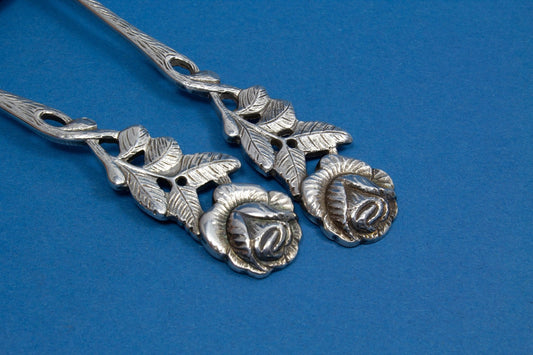 은으로 만든 장미가 장식된 케이크 서버, 은 수저, 835은