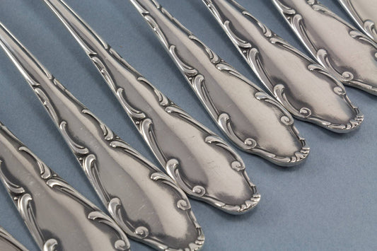 아르누보식 5인용 수저, 생선칼, 포크, 은도금, 실