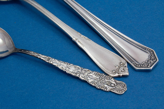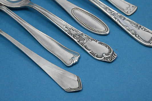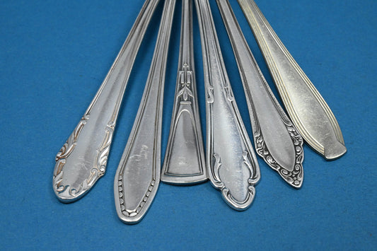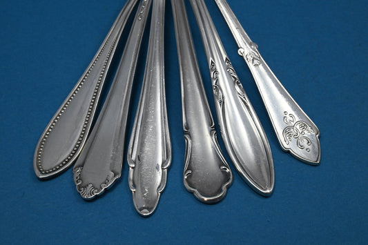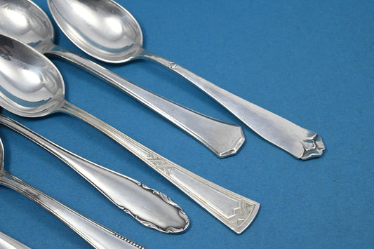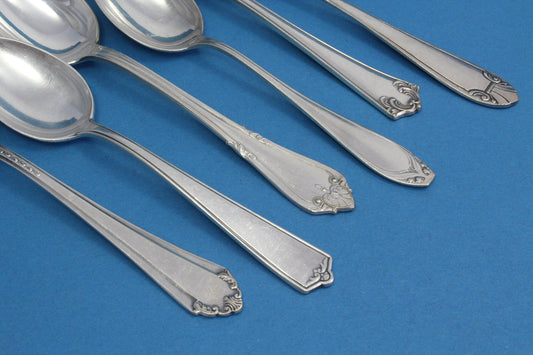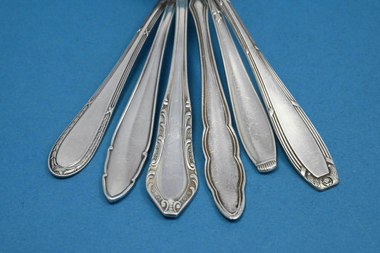 골동품 조각 티스푼 6개, 아르누보 은도금 숟가락, 불일치