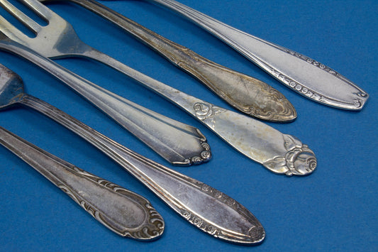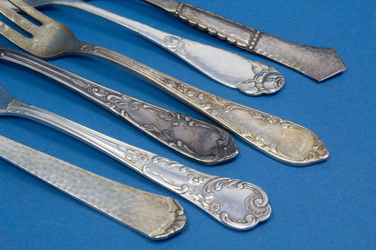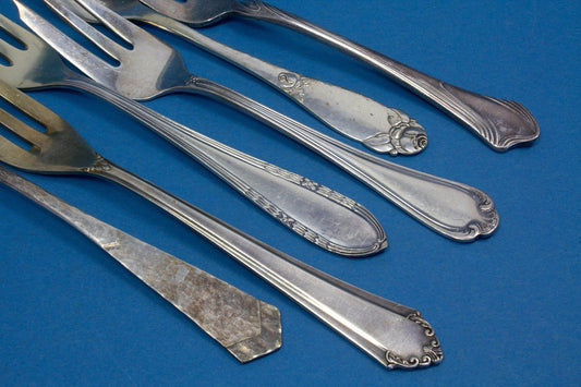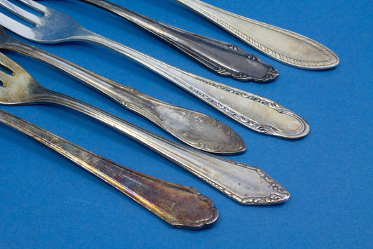 은도금 케이크 포크 6개, 믹스 앤 매치, 쉐비 시크
