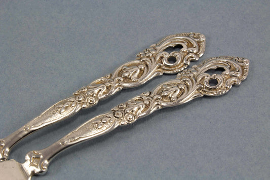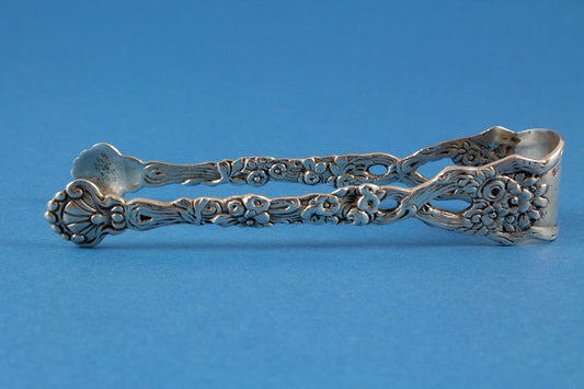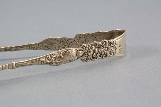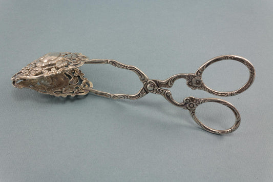 로코코 스타일의 은색 설탕 집게, 꽃무늬, 800실버
