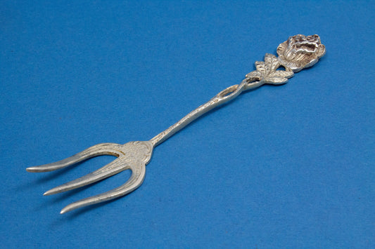 장미 무늬가 있는 아름다운 은색 빵 포크