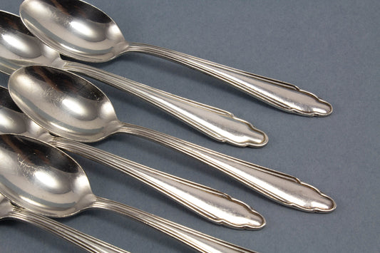Bruckmann의 오래된 티스푼 6개, 은도금, 그레인 패턴