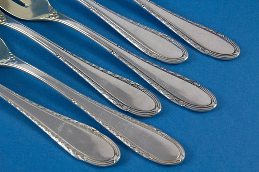Bruckmann의 오래된 케이크 포크 6개, 은도금, 그레인 패턴