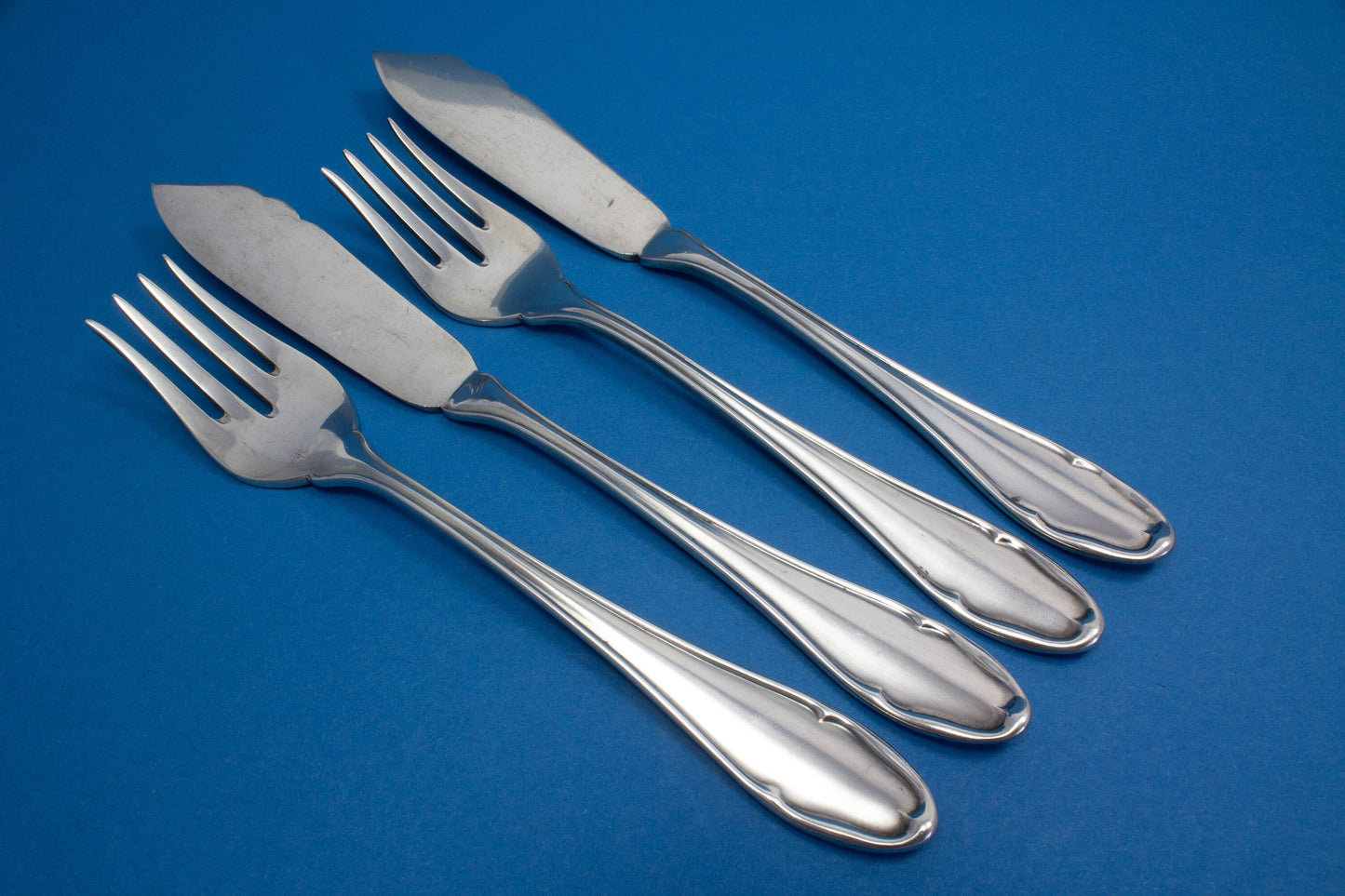 수저 세트는 2개의 생선 포크와 2개의 생선 칼로 구성되어 있습니다.