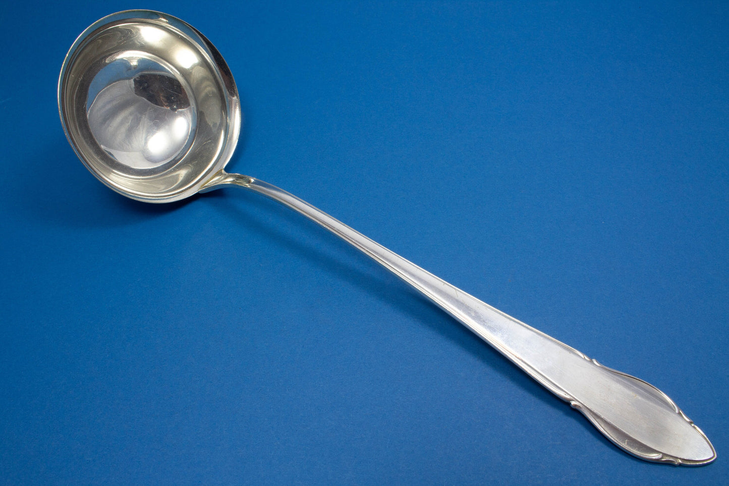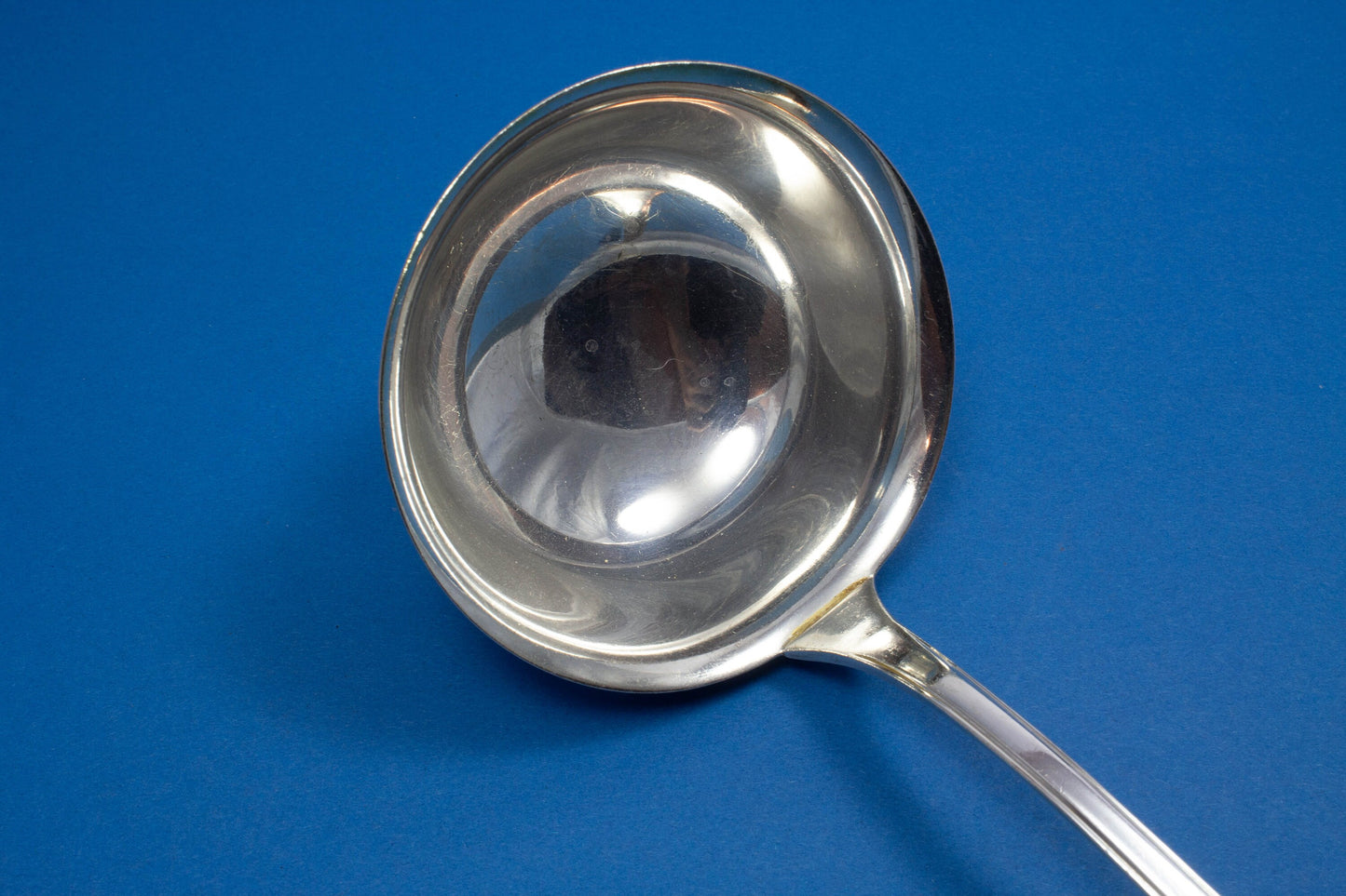 은도금 국자로 무늬가 예쁘고 큰 국그릇에 잘 맞습니다.