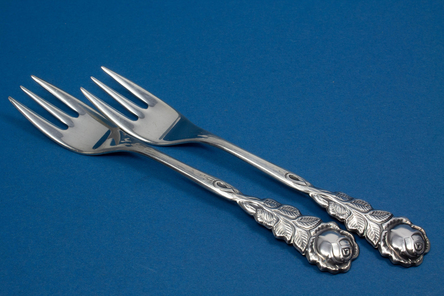 2 versilberte Kuchengabeln mit Rosen, versilberte Gabeln