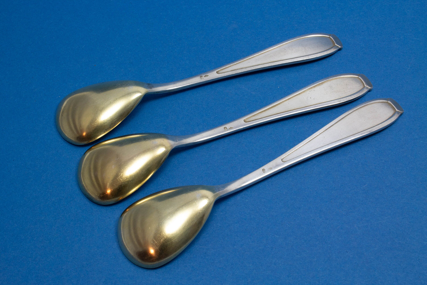 Diese 3 schönen und antiken Eislöffel sind versilbert und zeigen ein tolles Jugendstilkranzdekor. Die Löffel sind aus der Zeit um 1900.