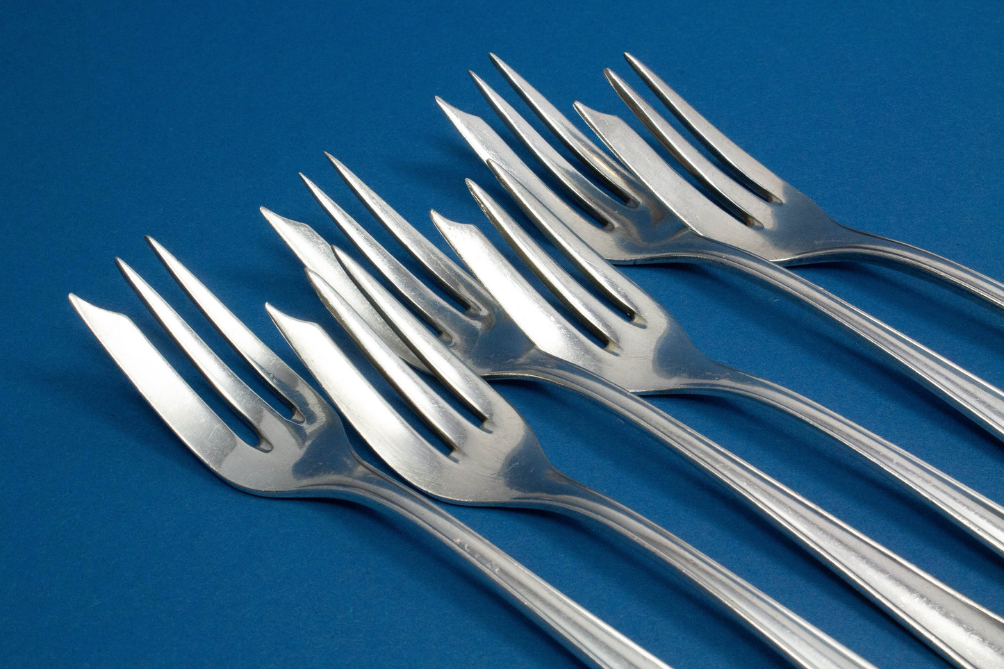 Versilberte Kuchengabeln , Bruckmann, Korn-Muster
