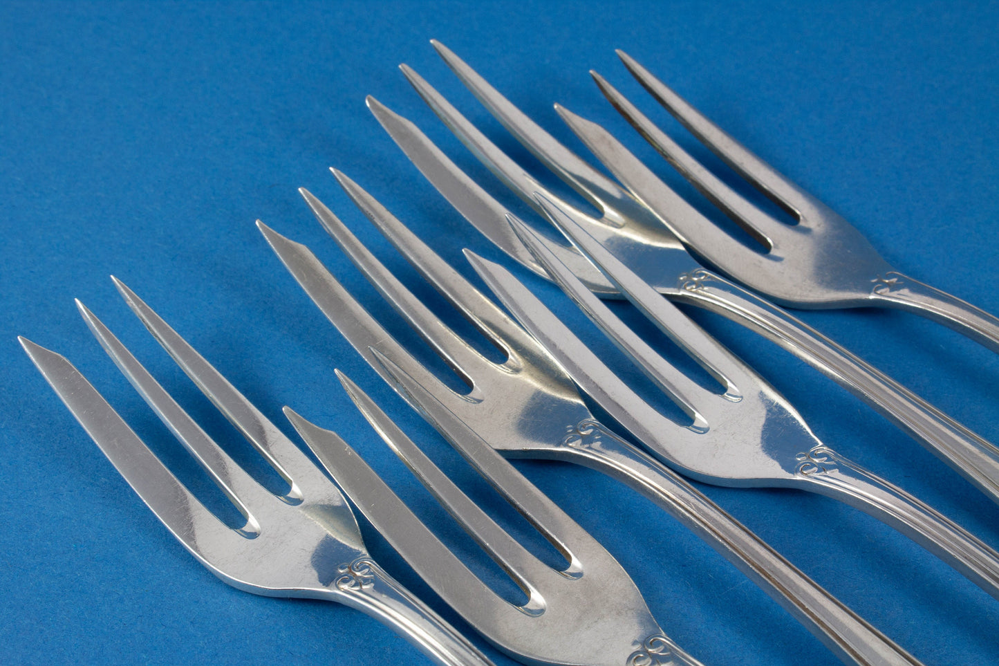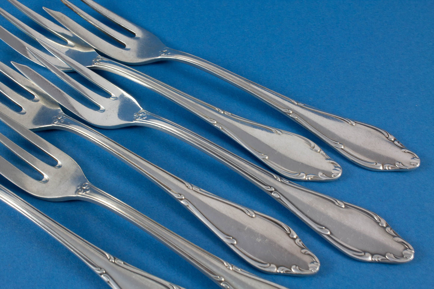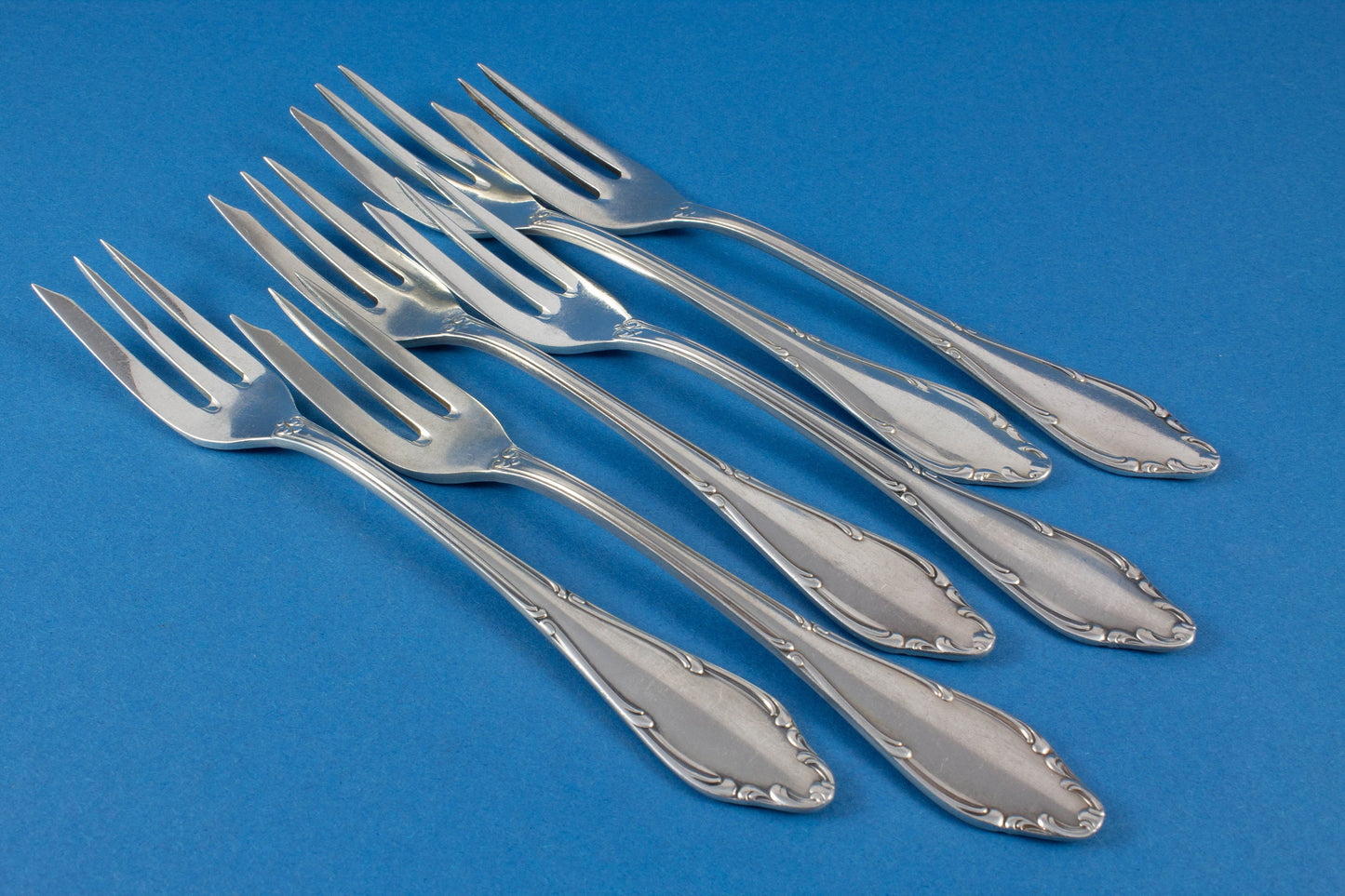 6 Kuchengabeln, versilbert, Wellner Mozart