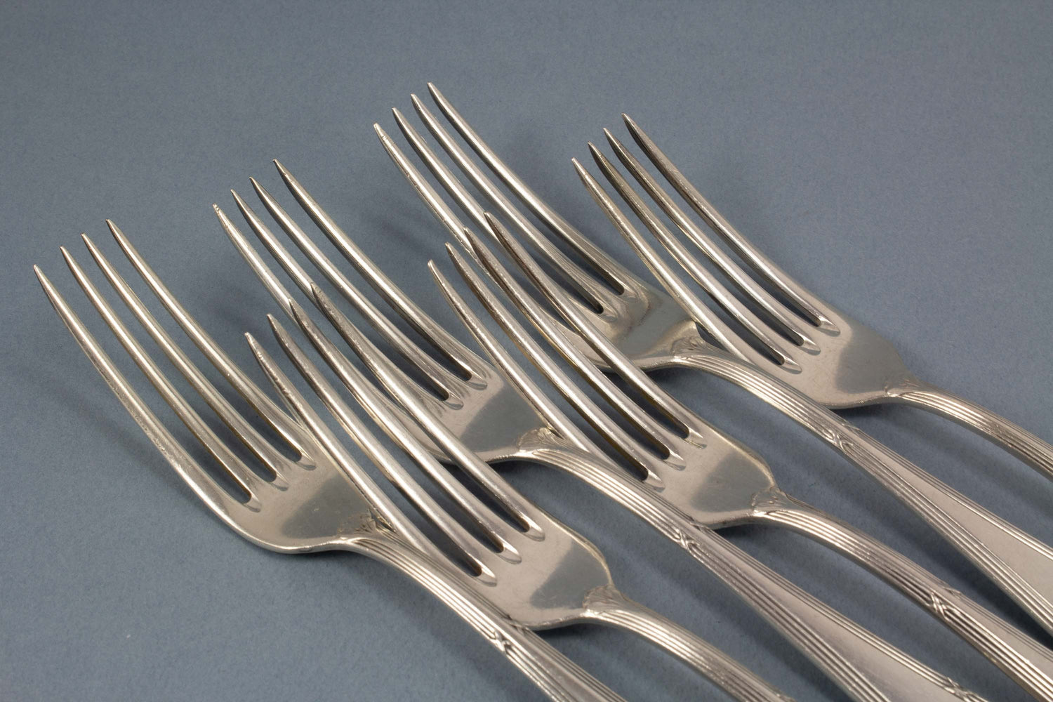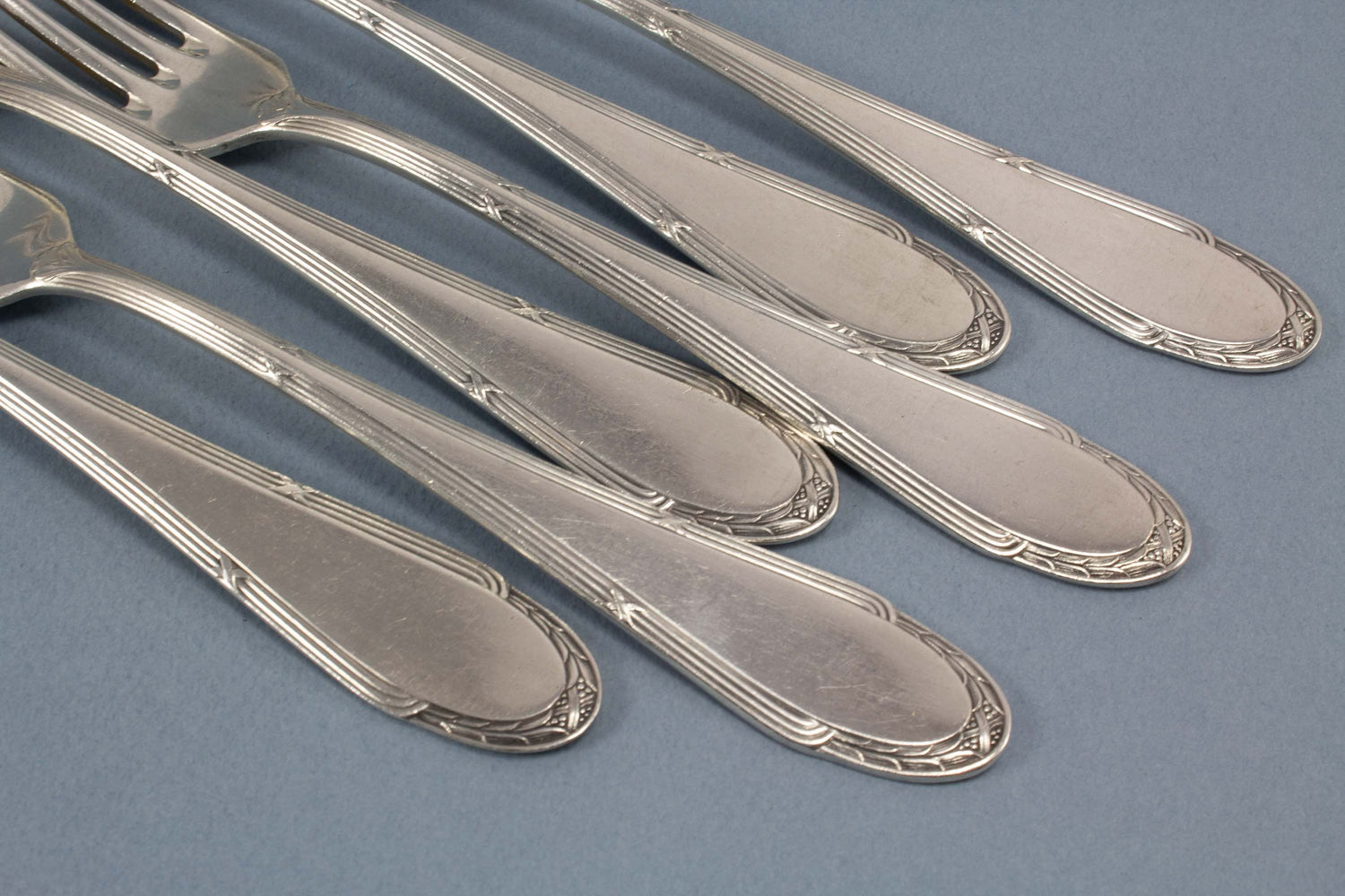 Sechs seltene Tafelgabeln von der Besteckmanufaktur WMF im Art Deco-Muster 200.