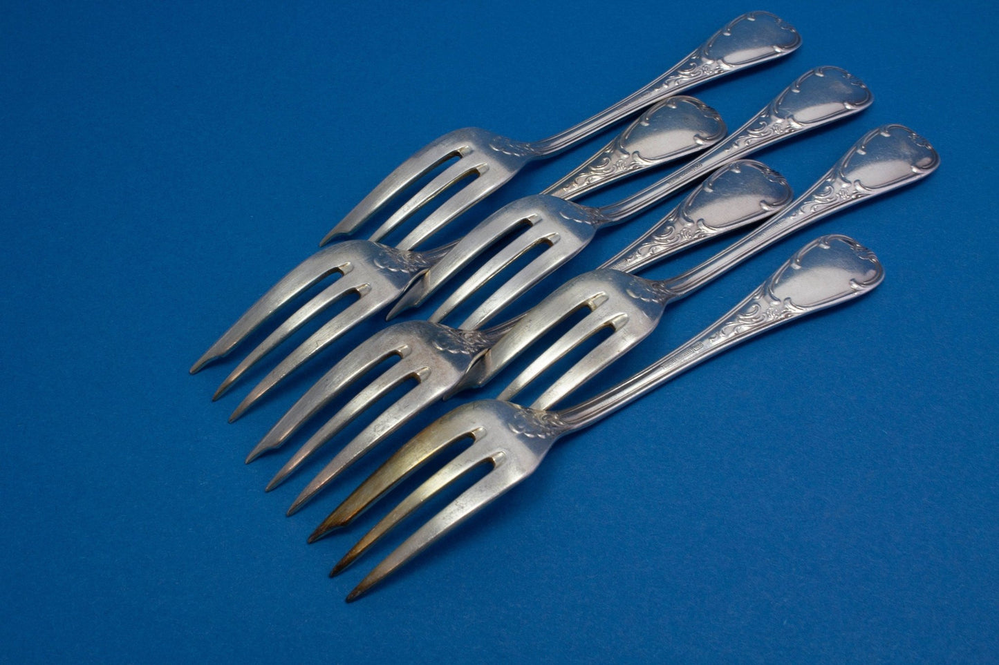 Sechs versilberte Kuchengabeln im Rokoko-Stil. Wunderschöne Gabeln für besondere Momente.