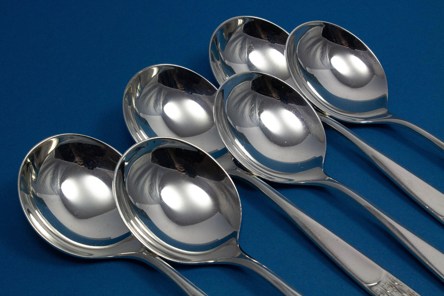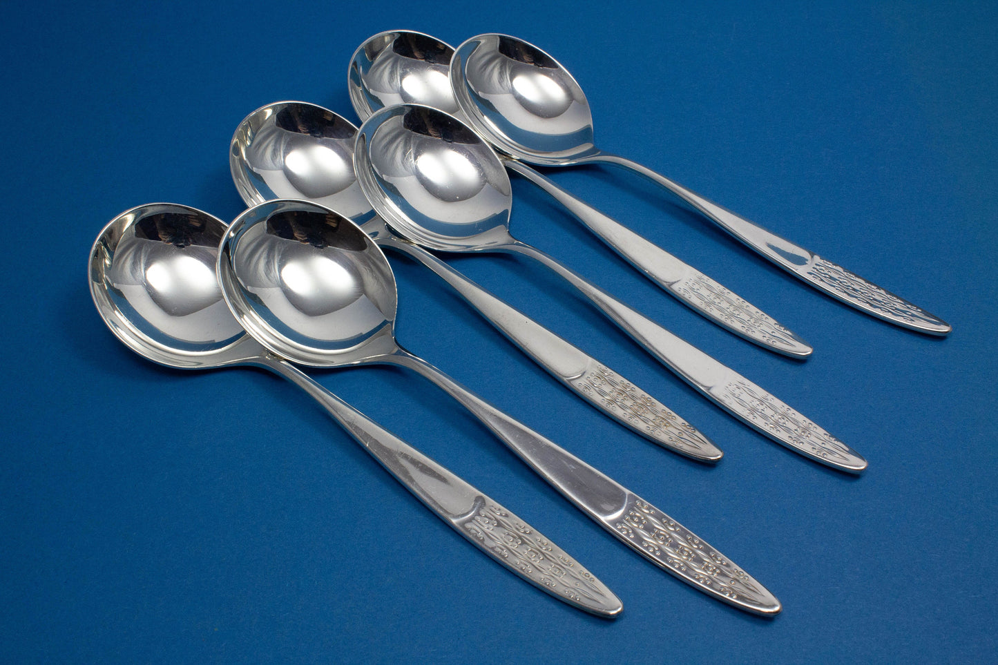 6 versilberte Tassenlöffel, Suppentassenlöffel, WMF Rio