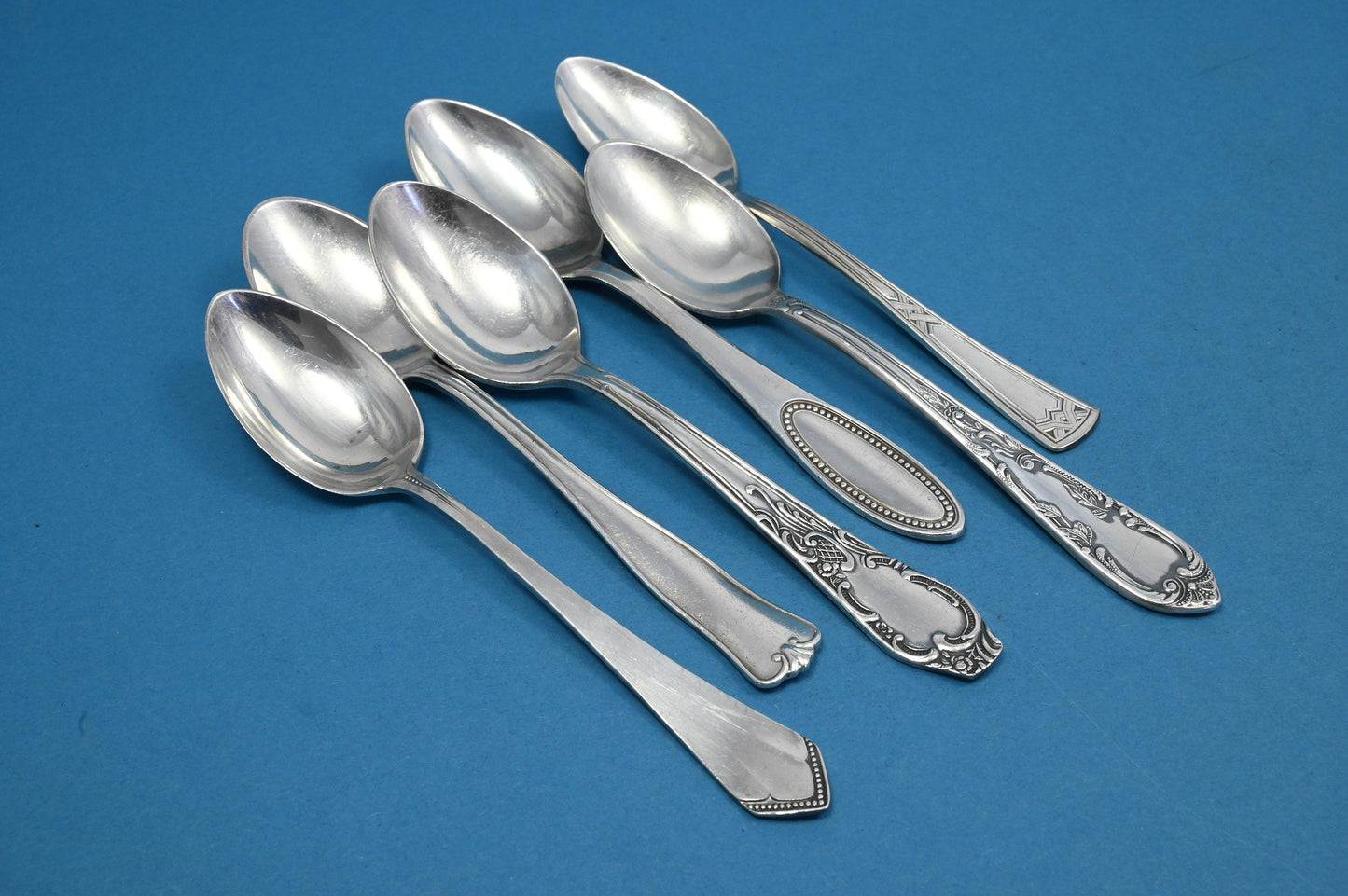 6 versilberte Teelöffel, Mix and Match, shabby chic