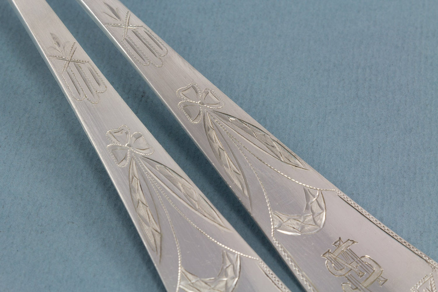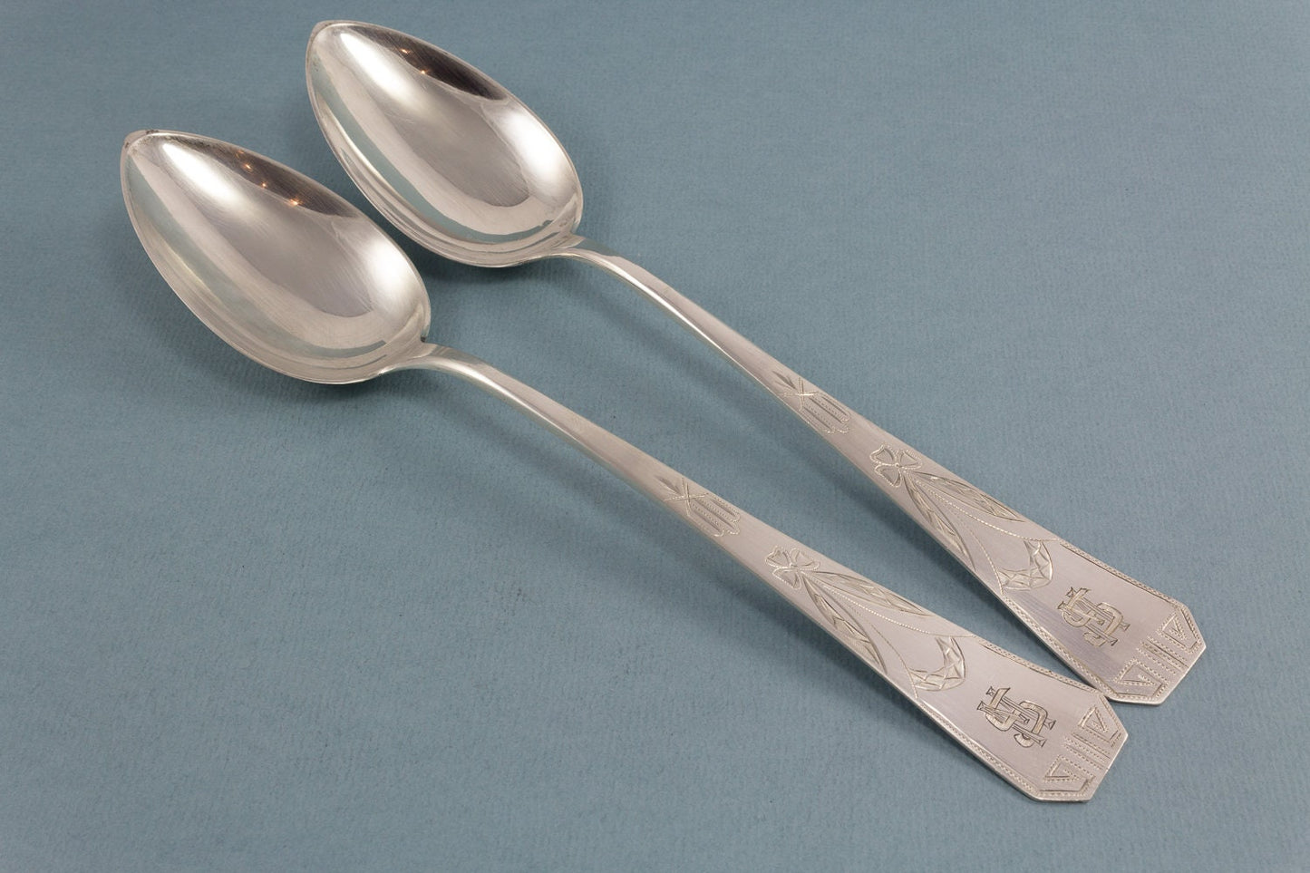 Diese beiden wunderschönen Jugendstil-Löffel sind aufwendig von Hand ziseliert. Sie zeigen einen vorbildlichen Dekor um 1900.