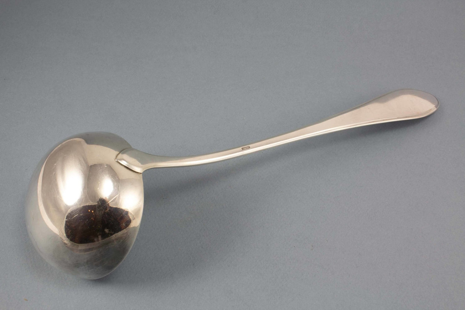 Edle versilberte Suppenkelle, Jugendstil Kelle, versilbertes Besteck, Bruckmann
