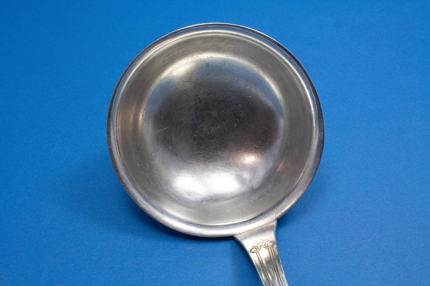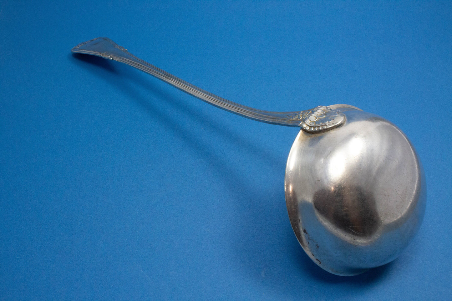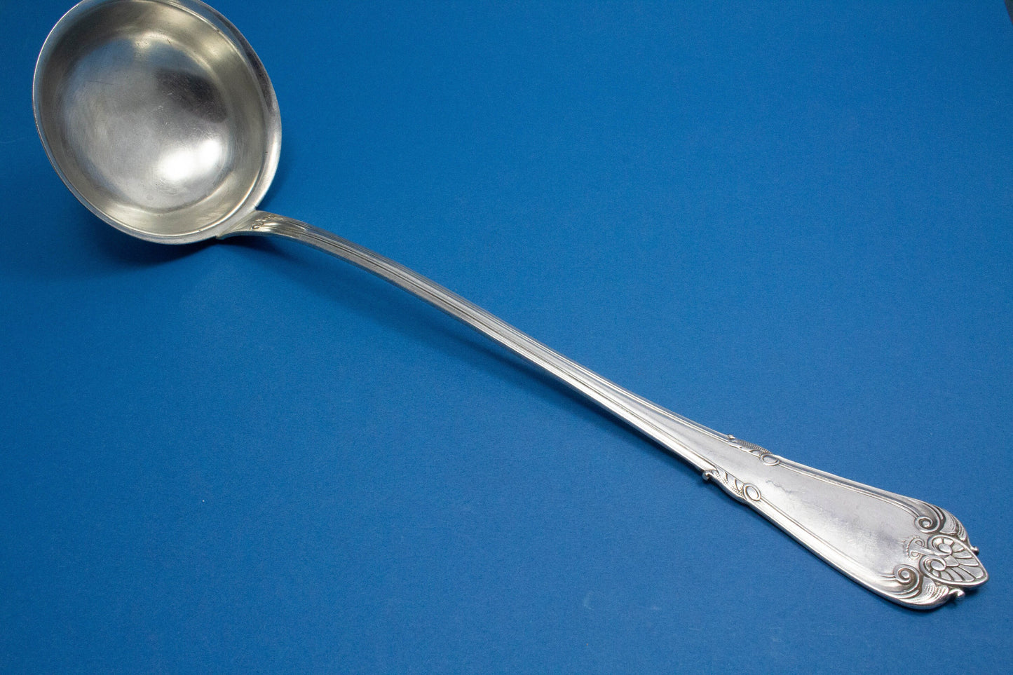 Diese versilberte Suppenkelle zeigt ein hübsches Muster und ist bestens geeignet für große Suppentöpfe.