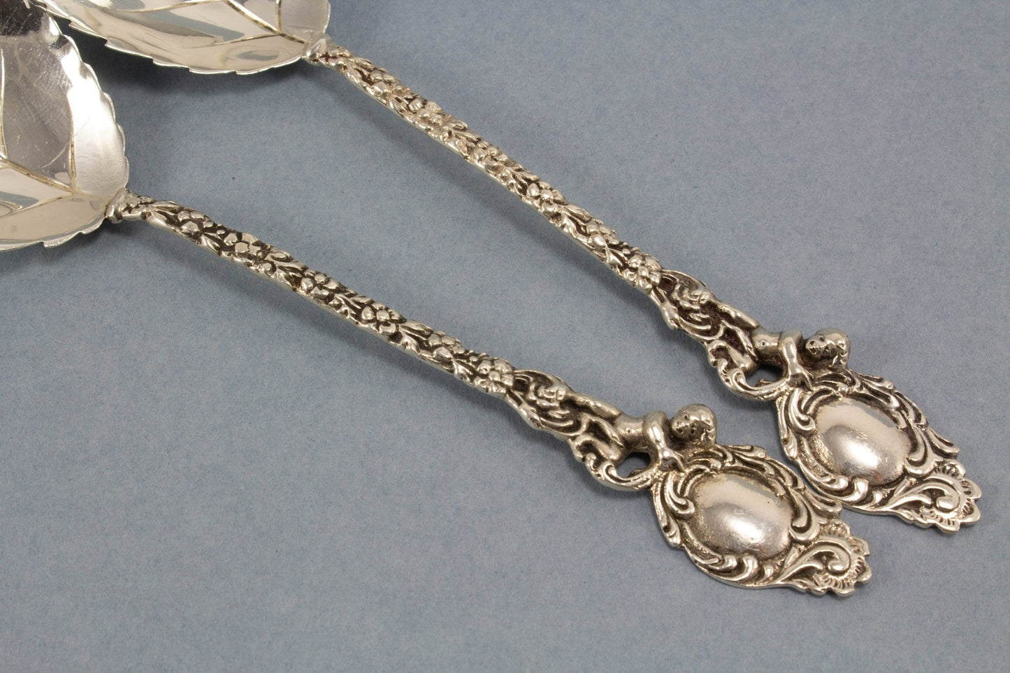 Kleines silbernes Salatbesteck mit Putti, 800er Silber, Vorlegebesteck, Jugendstil,