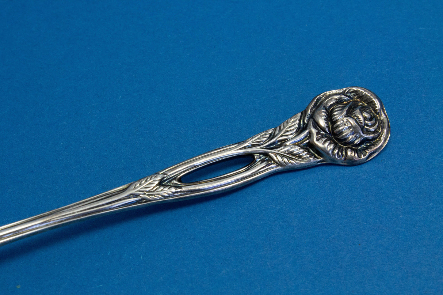 Sahnelöffel, versilberter Vintage-Löffel mit Rosen