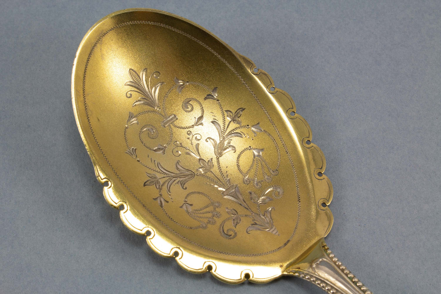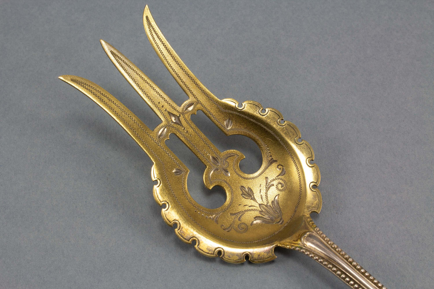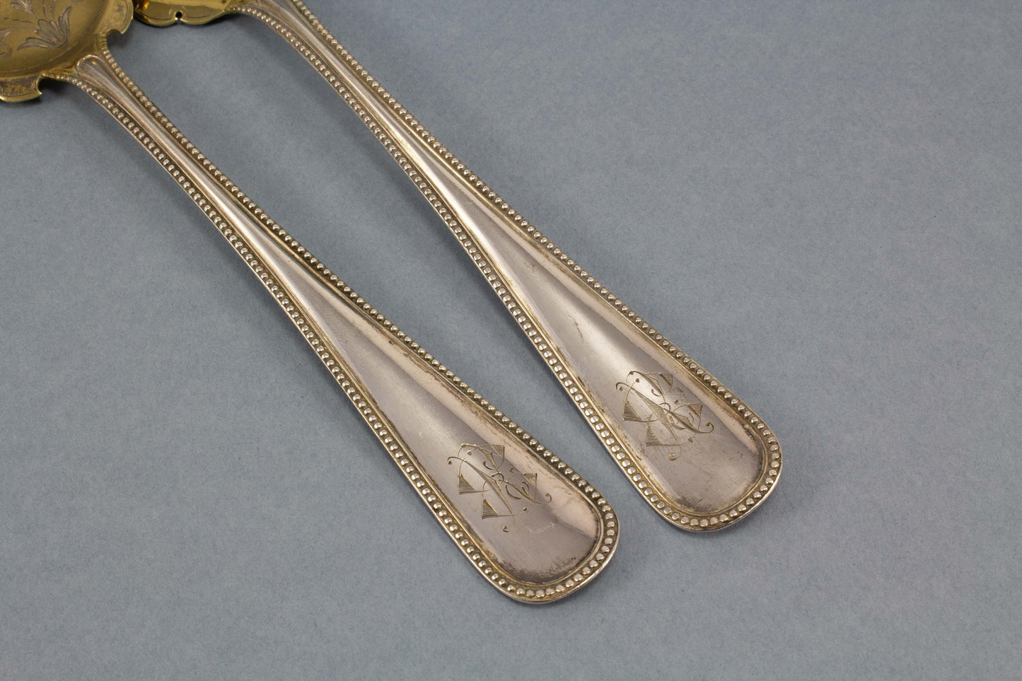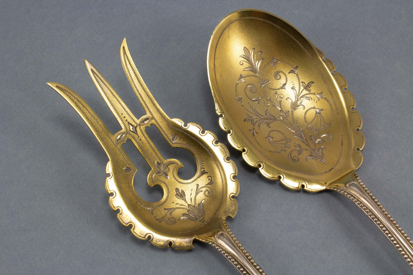 Die Zinken und Löffel sind zusätzlich vergoldet und mit Jugendstil-Ornamenten von Hand ziseliert.