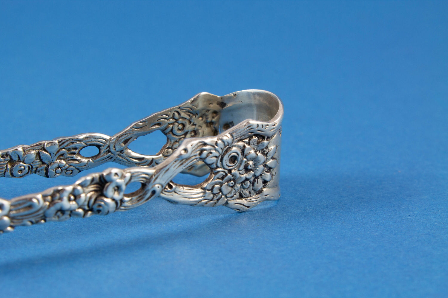 Silberne Zuckerzange im Rokoko-Stil, Blumenmuster, 800er Silber