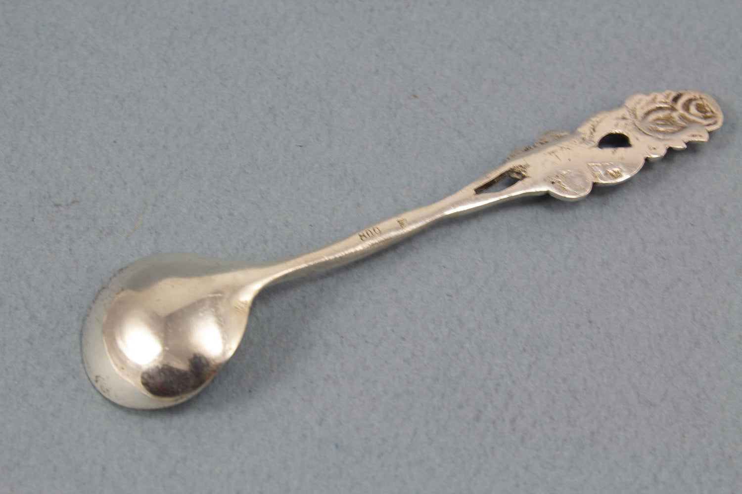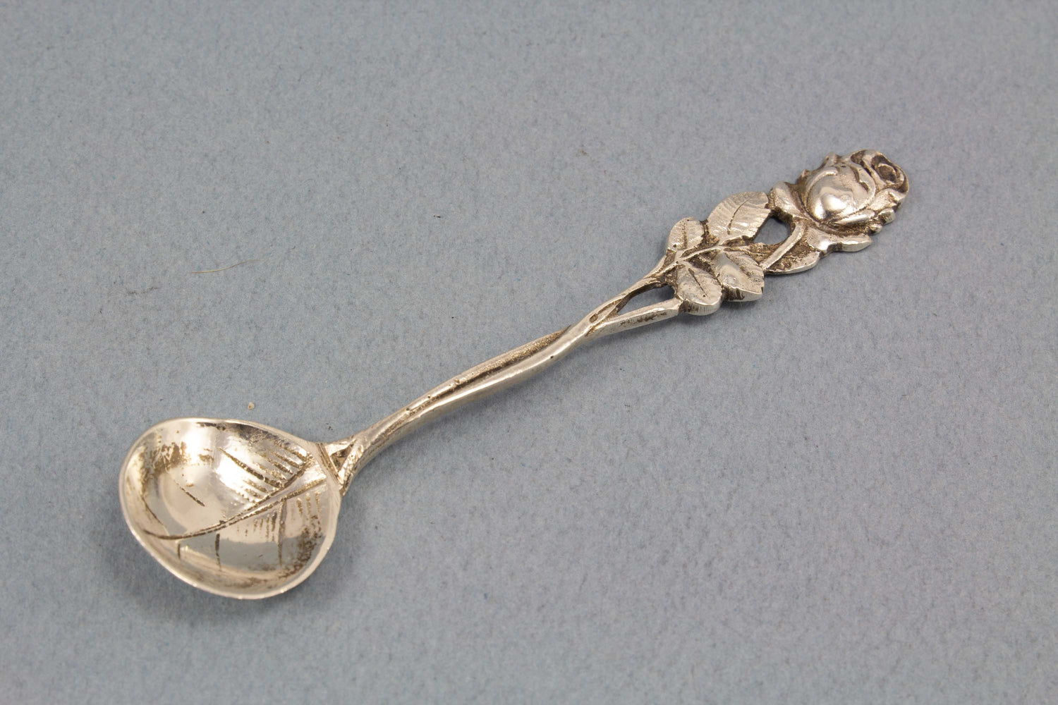 Silberner Salzlöffel, Gewürzlöffel mit Rosenmuster