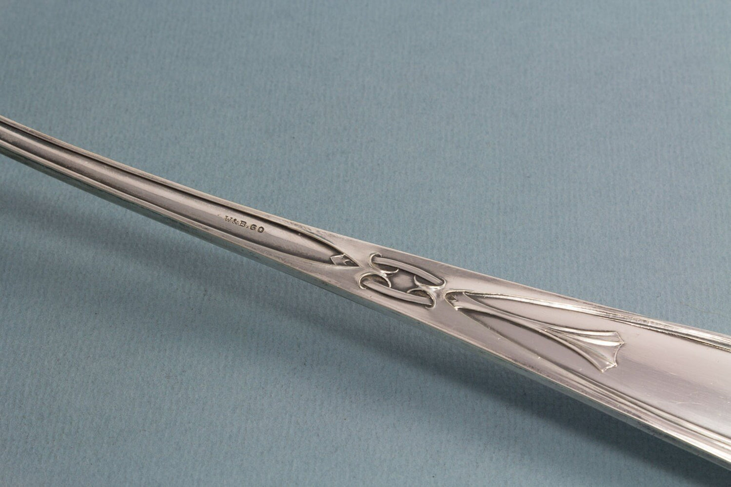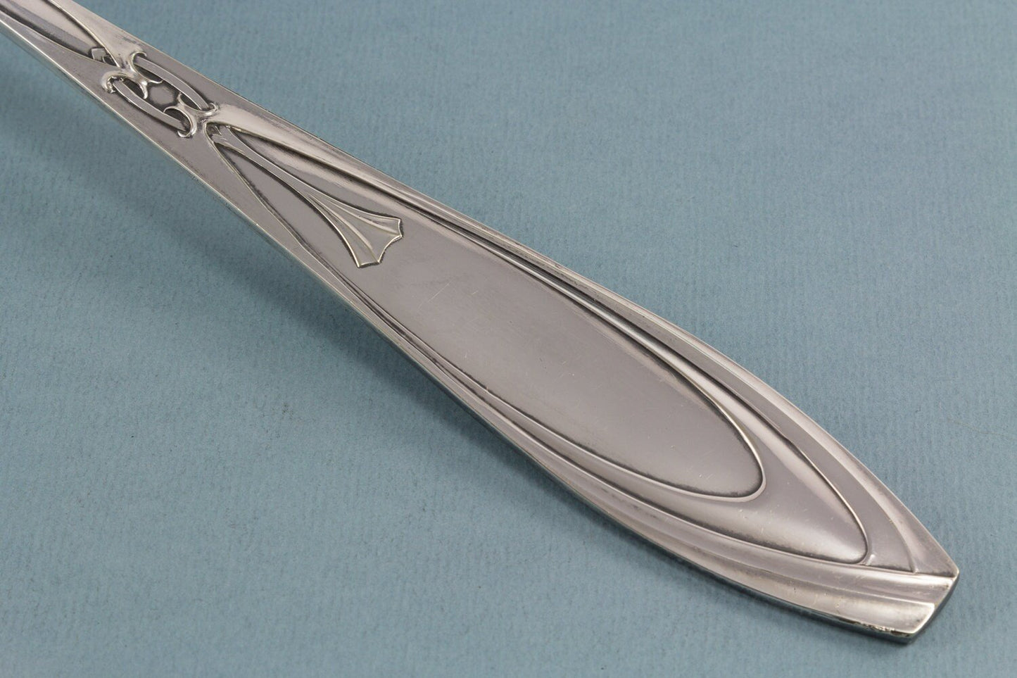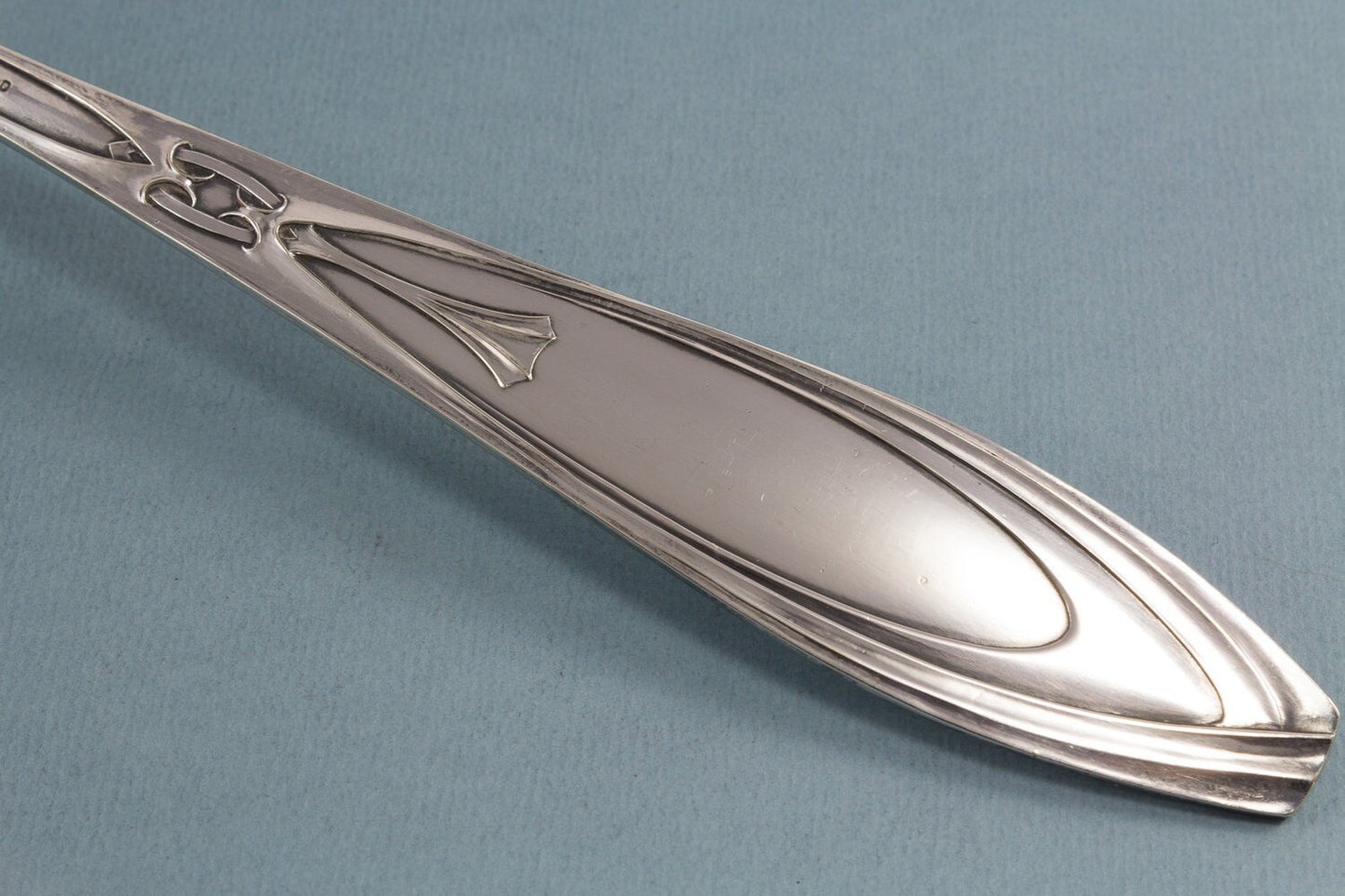 Eine antike Suppenkelle im außergewöhnlichem Jugendstil Dekor. Die Kelle ist versilbert. Eine wunderschöne Vintage Suppenkelle für einen schönen Esstisch zu einer leckere Suppe. Eine wunderschöne Kelle von W&B mit einem ganz besonderen Dekor.